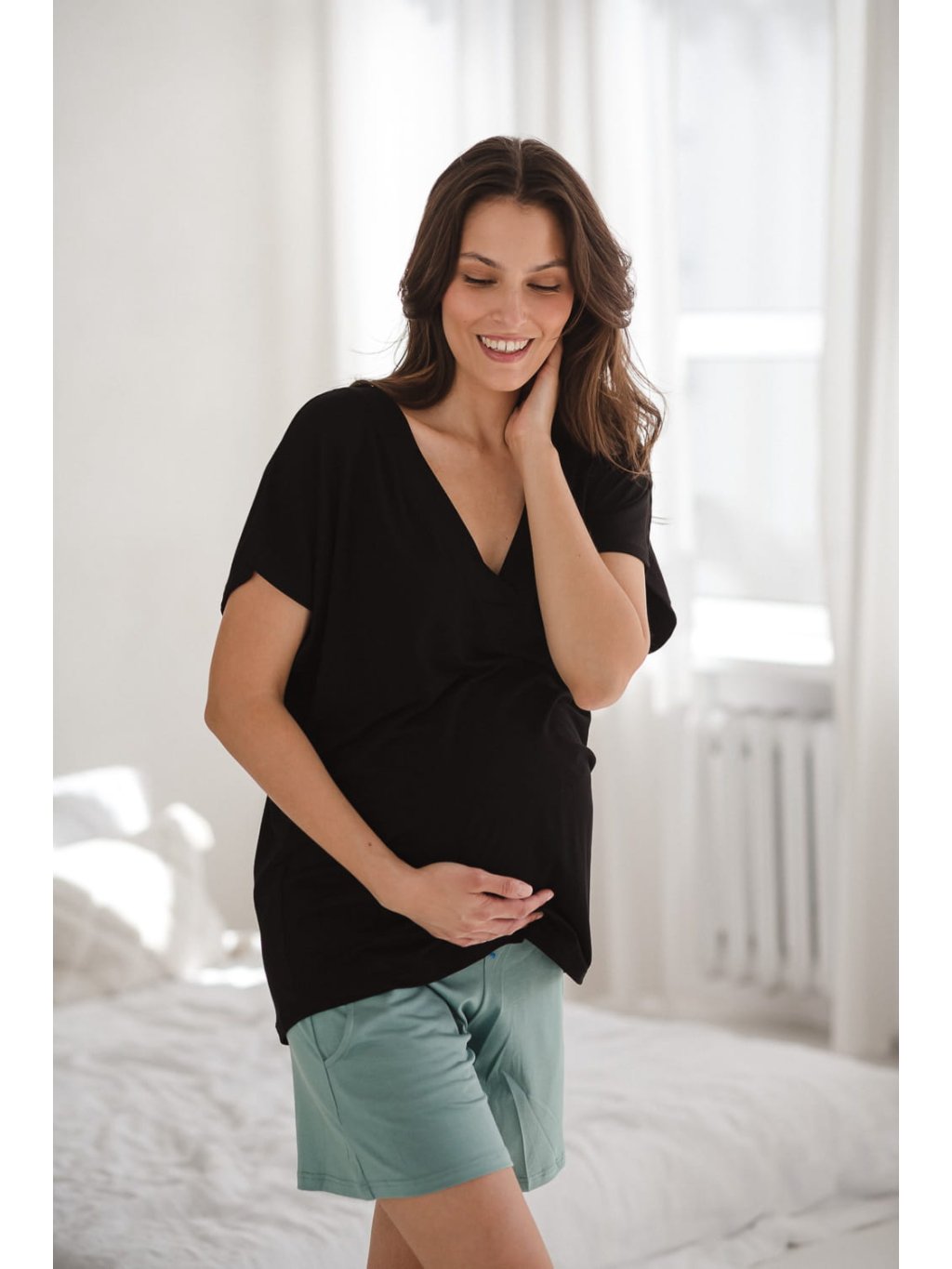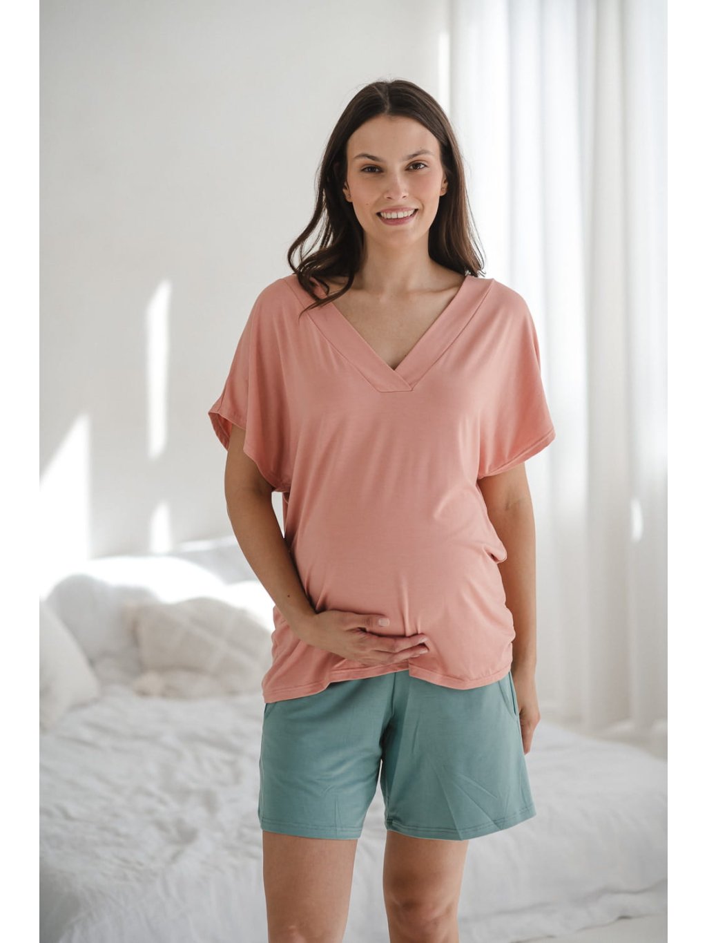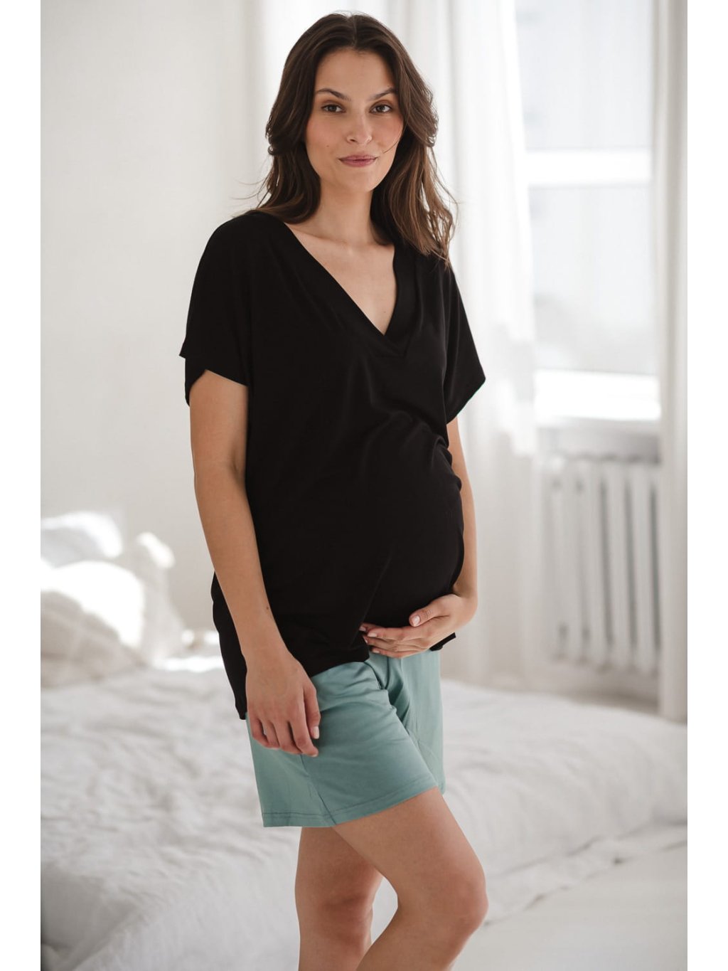 Kolekce Moon se skládá z těhotenských nočních košil, halenek, šortek a kalhot které si můžete vybrat a vytvořit si tak tu nejlepší sadu. Víme, že každá z vás je jiná a máte rády různé délky rukávů a nohavic – proto si vytvořte svou vysněnou těhotenskou a kojící sadu na noc i den.