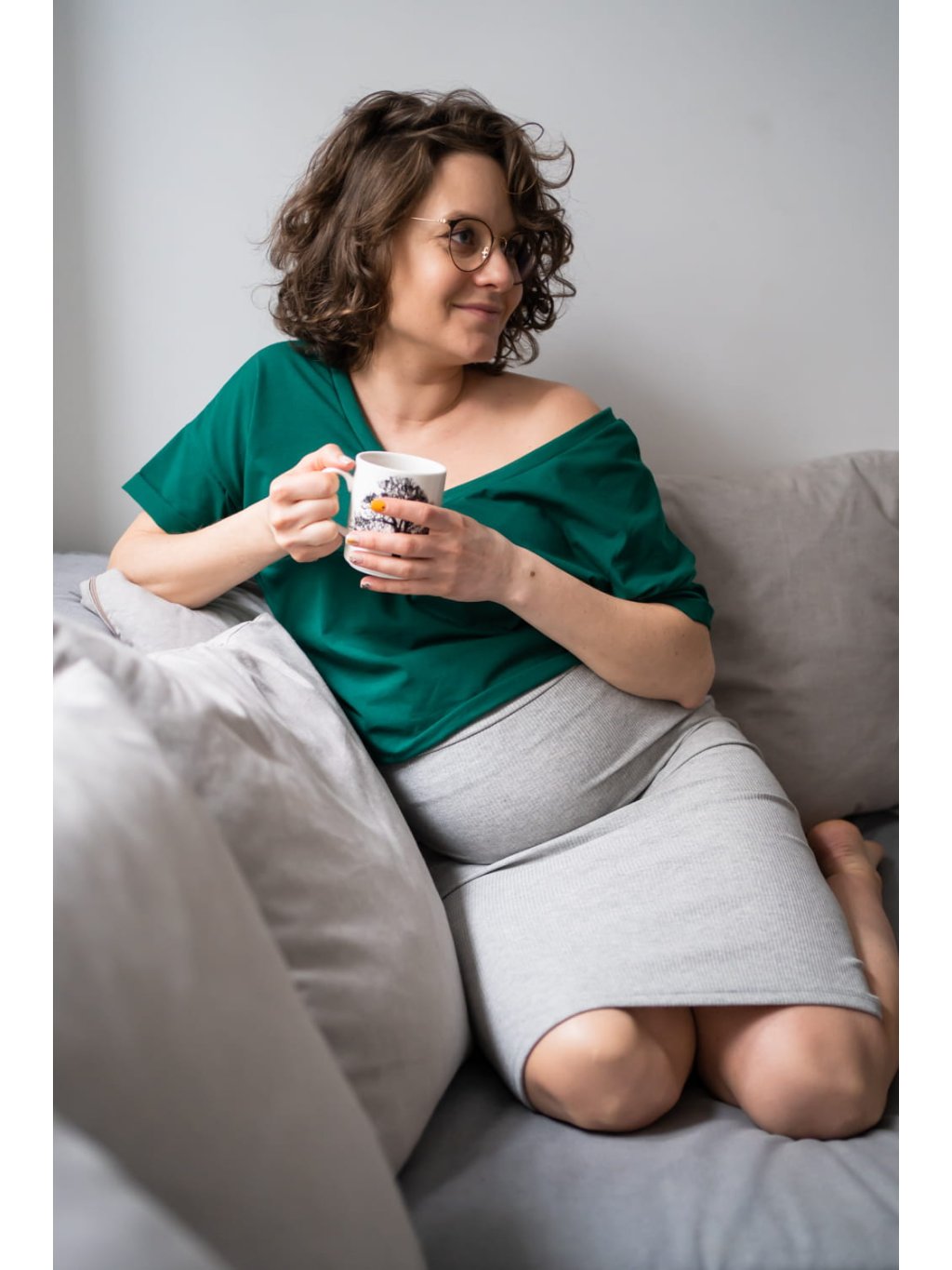 Tato těhotenská sukně s tužkovým střihem je skvělým základem pro mnoho stylů. Lze ji nosit každý den s teniskami, s balerínkami na neformální schůzky, nebo s podpatky. Měkký úplet netlačí a umožňuje volnost pohybu. Sukni můžete nosit přetaženou přes bříško nebo v teplejších dnech pod bříškem jako midi sukni. Po narození miminka ji můžete nosit jako běžnou přiléhavou sukni, která krásně tvaruje vaši postavu a zároveň drží vaše bříško po porodu.