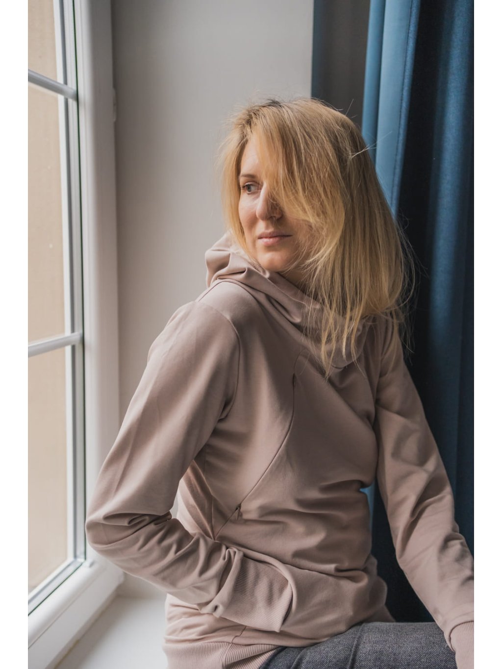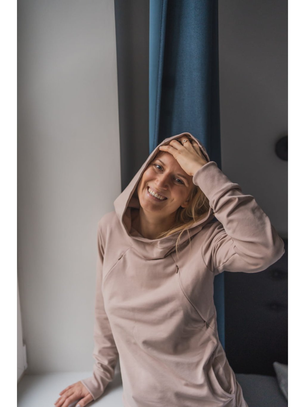 Béžový odstín je nadčasový, snadno kombinovatelný a působí velmi jemně. Mikina se hodí k legínám, džínům i teplákům a využijete ji po celý rok.
