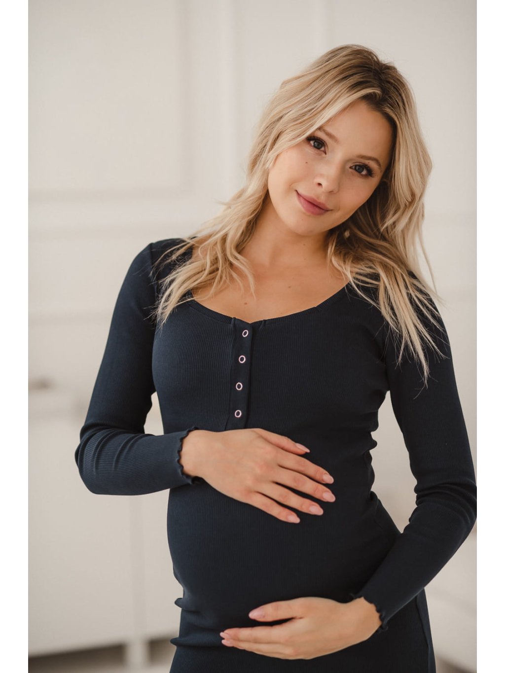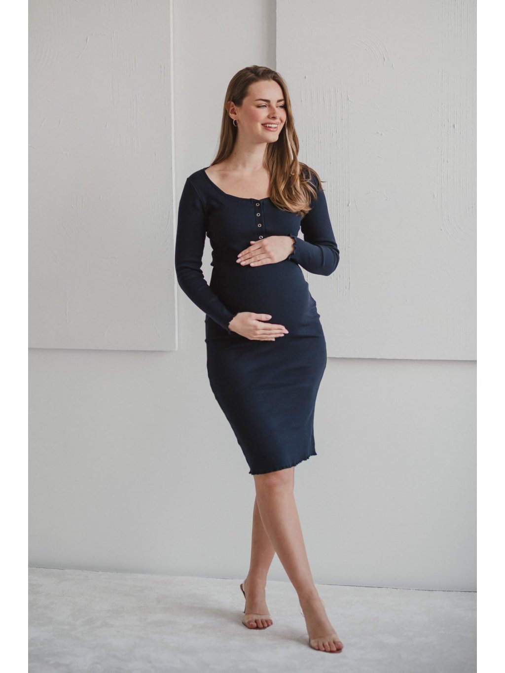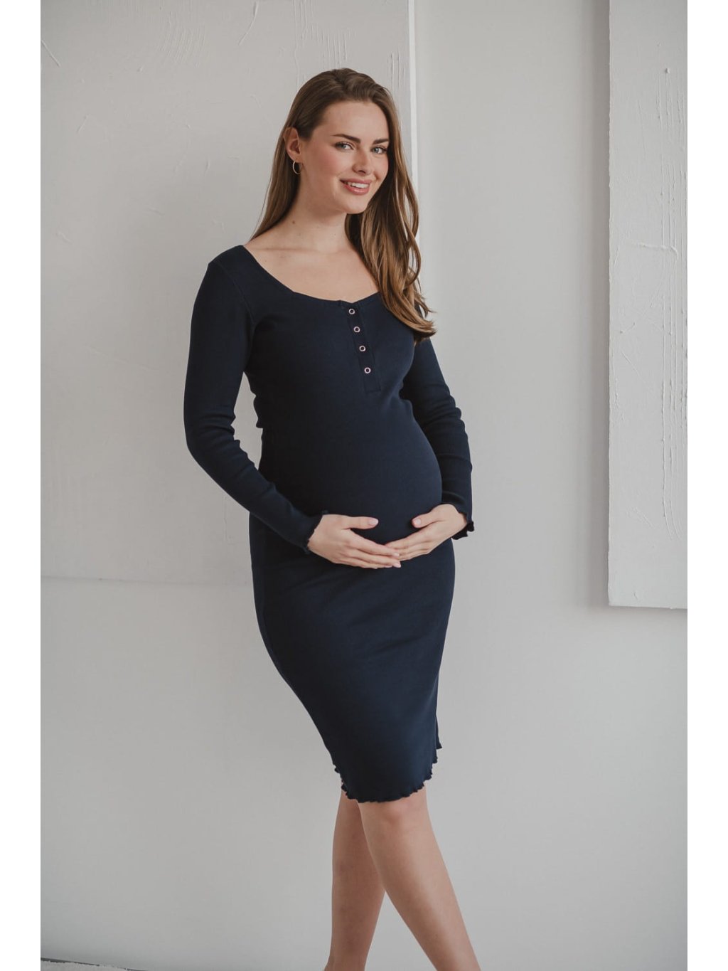 Bavlněné, těhotenské a kojící šaty z žebrovaného úpletu Tummy tmavě modré