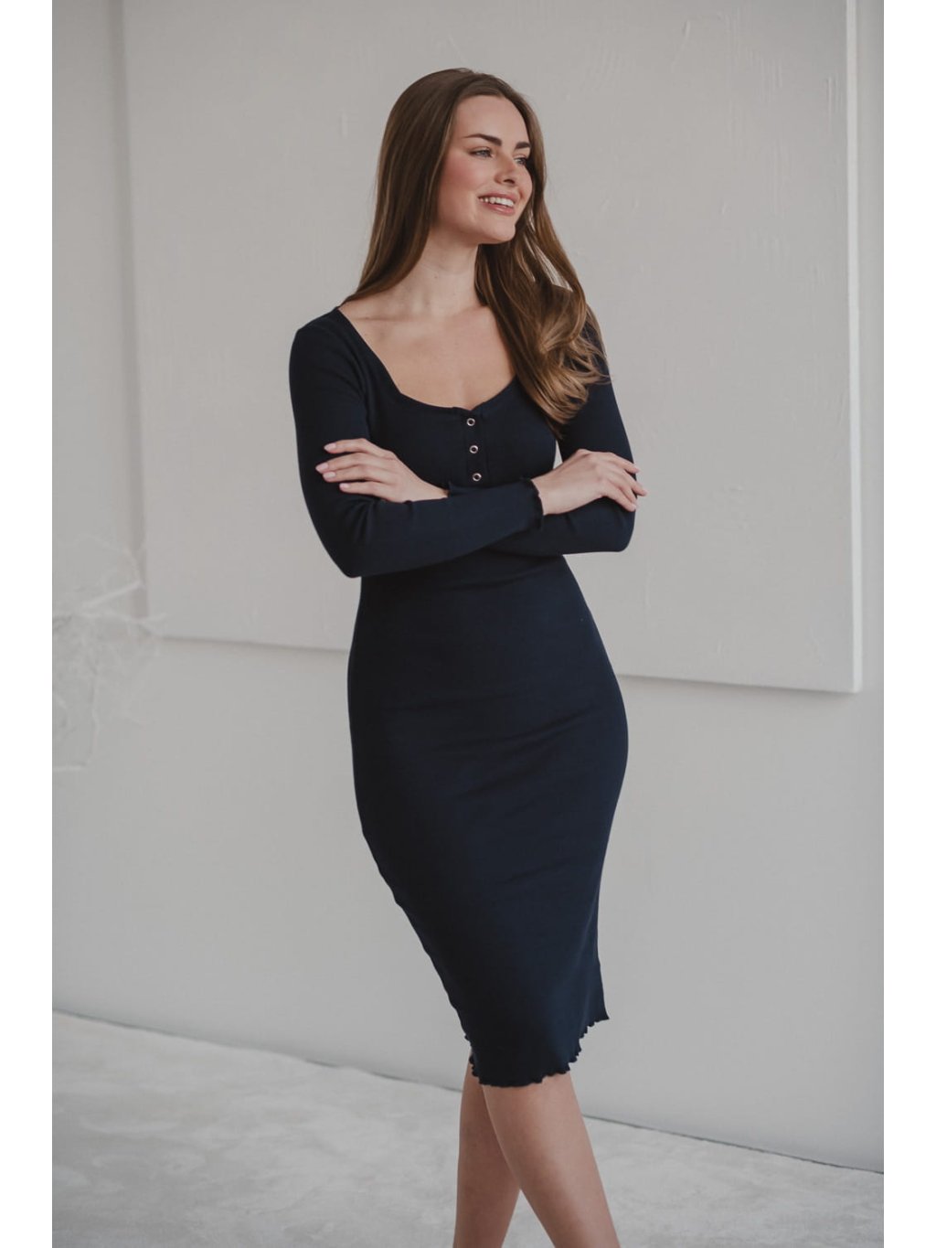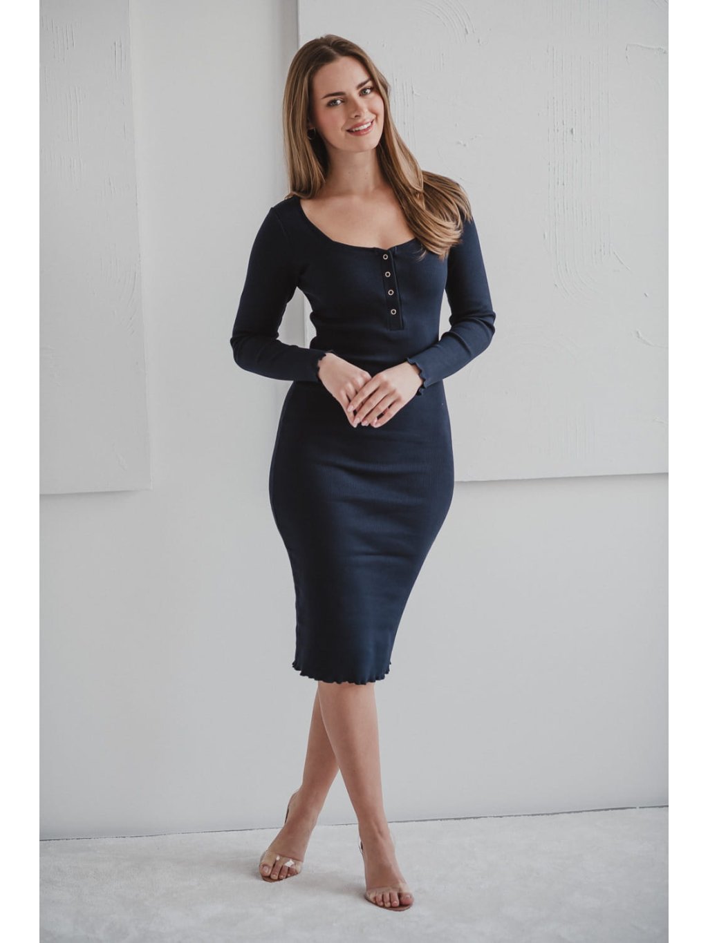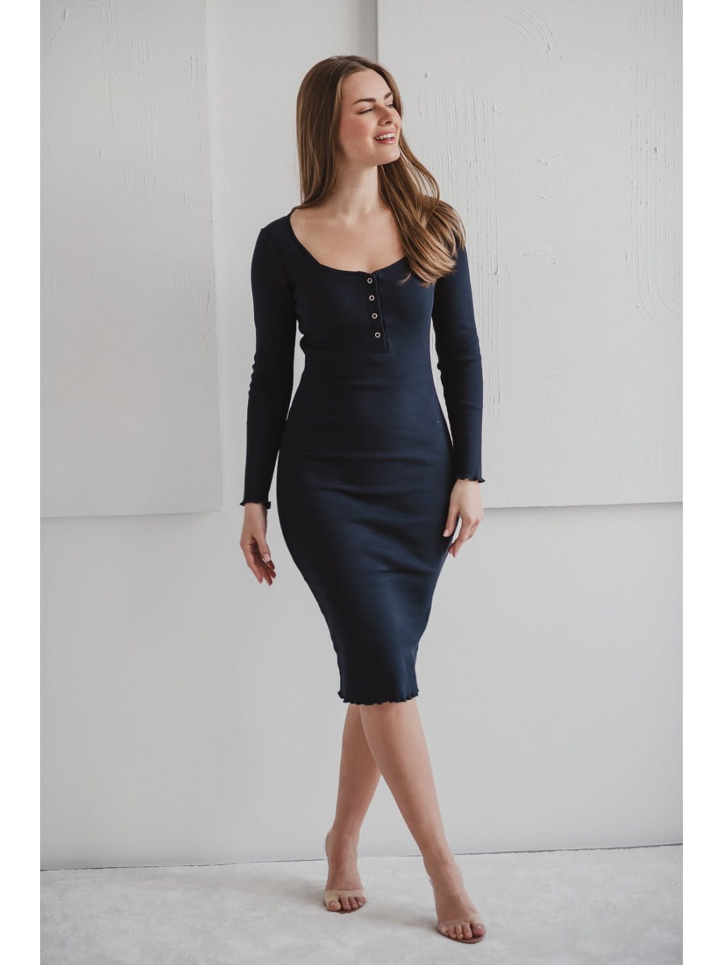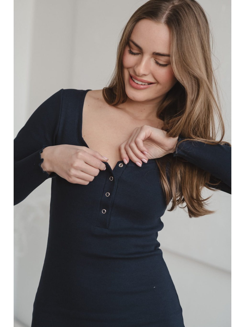Bavlněné, těhotenské a kojící šaty z žebrovaného úpletu Tummy tmavě modré
