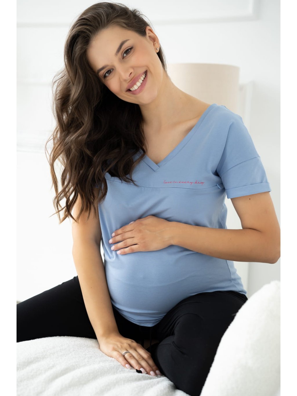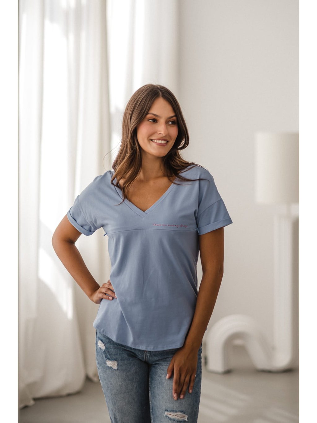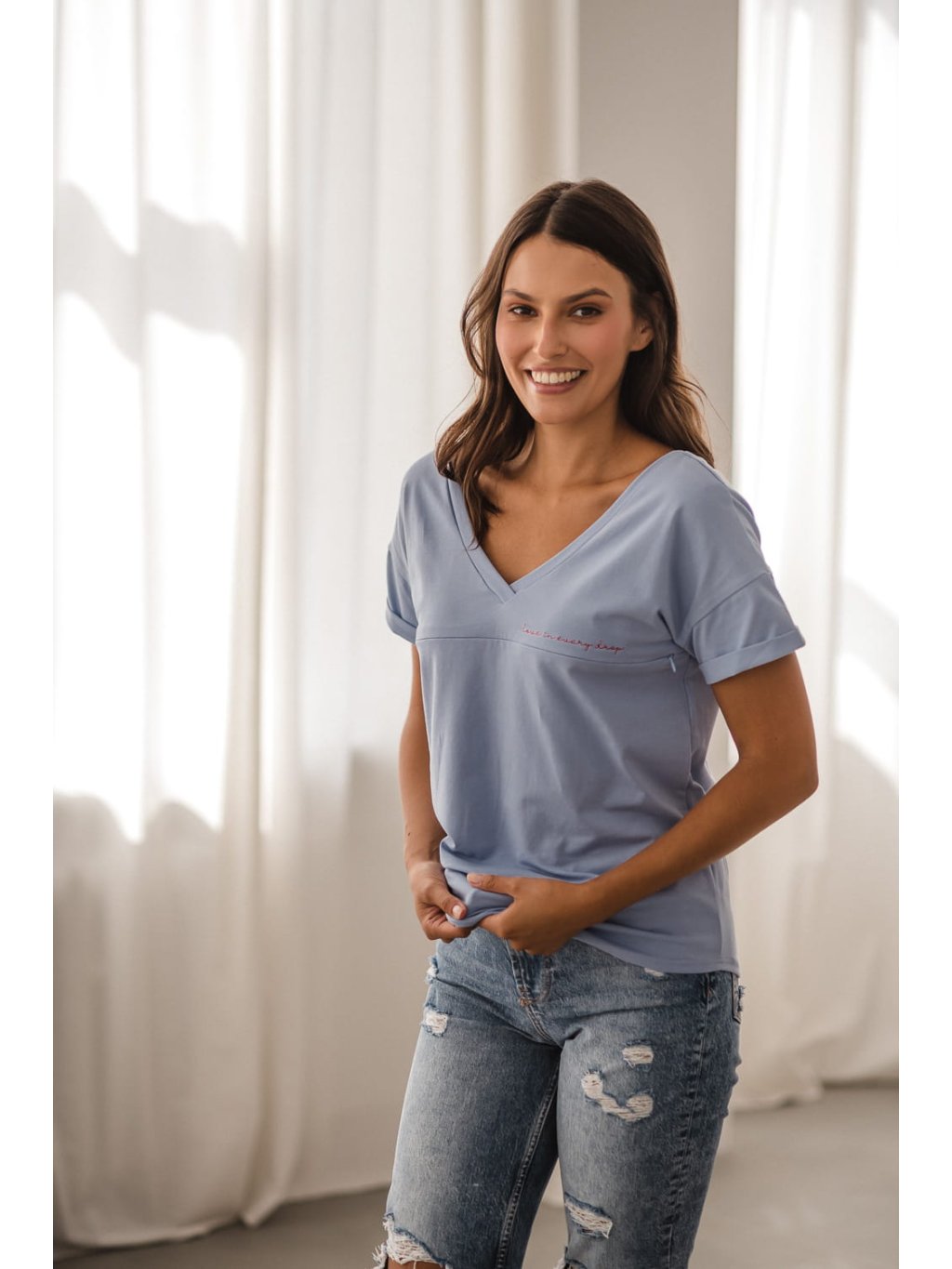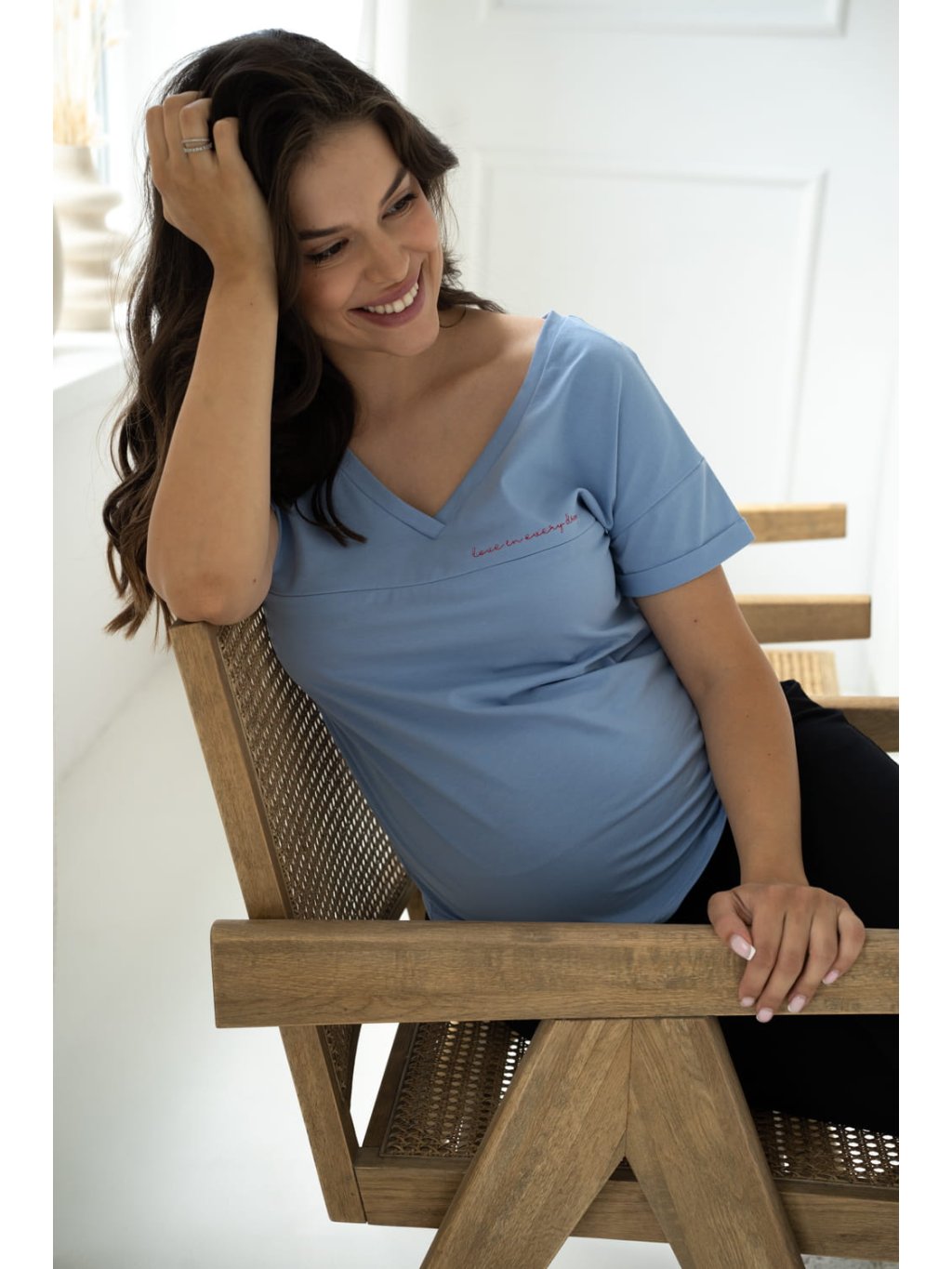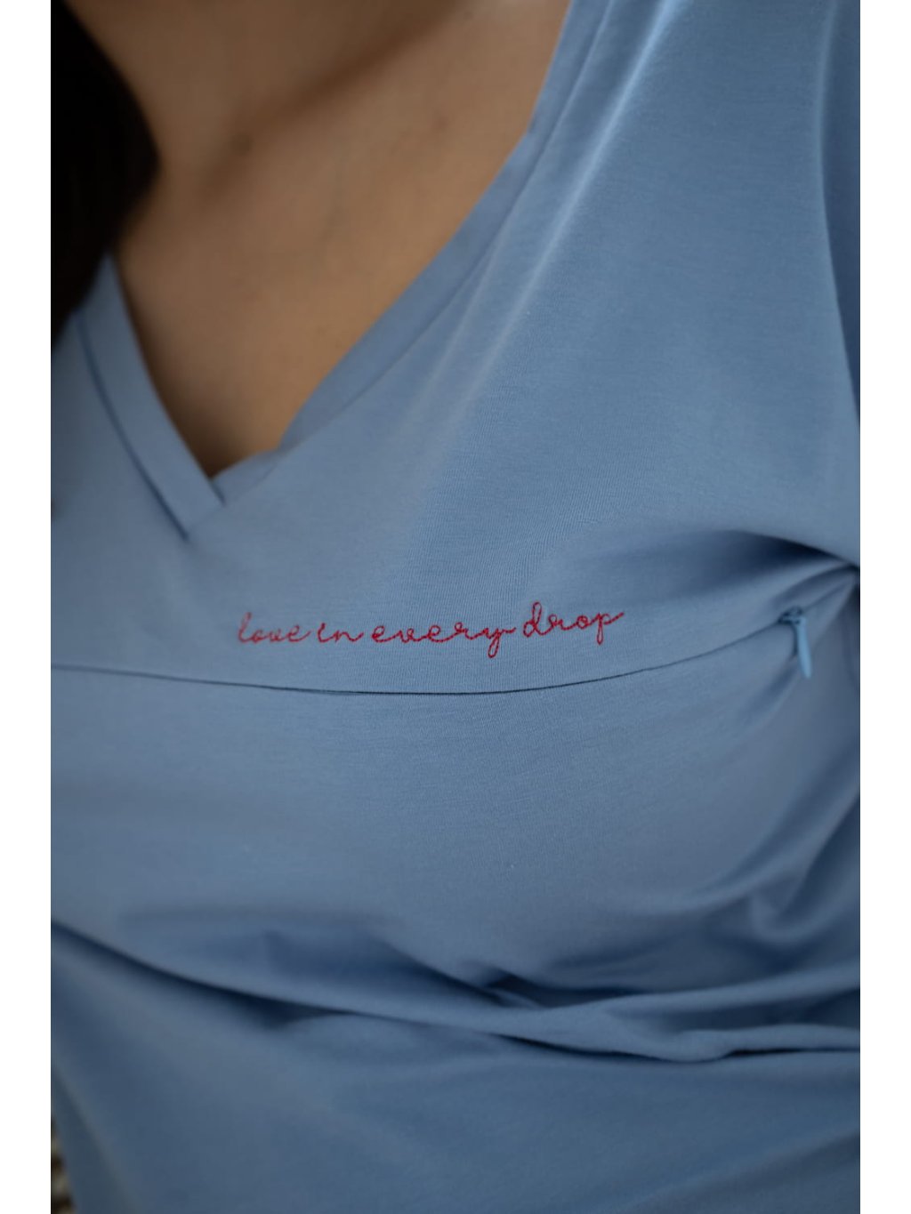 Bavlněné, těhotenské a kojící tričko M-shirt světle modré s výšivkou "love in every drop"