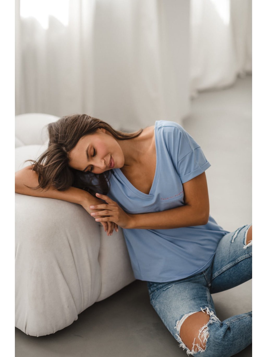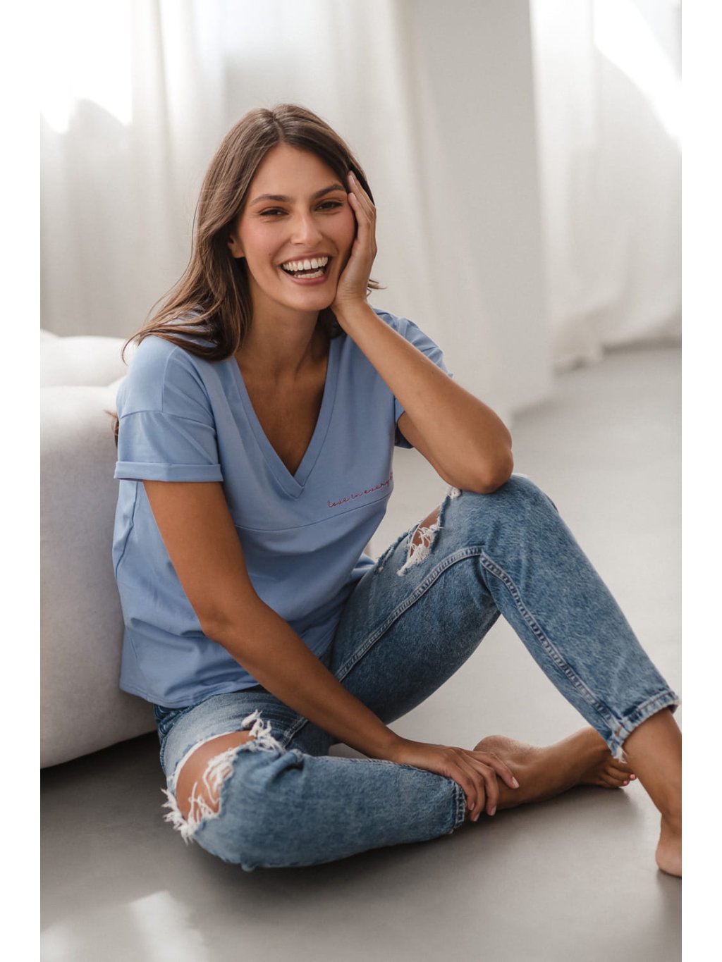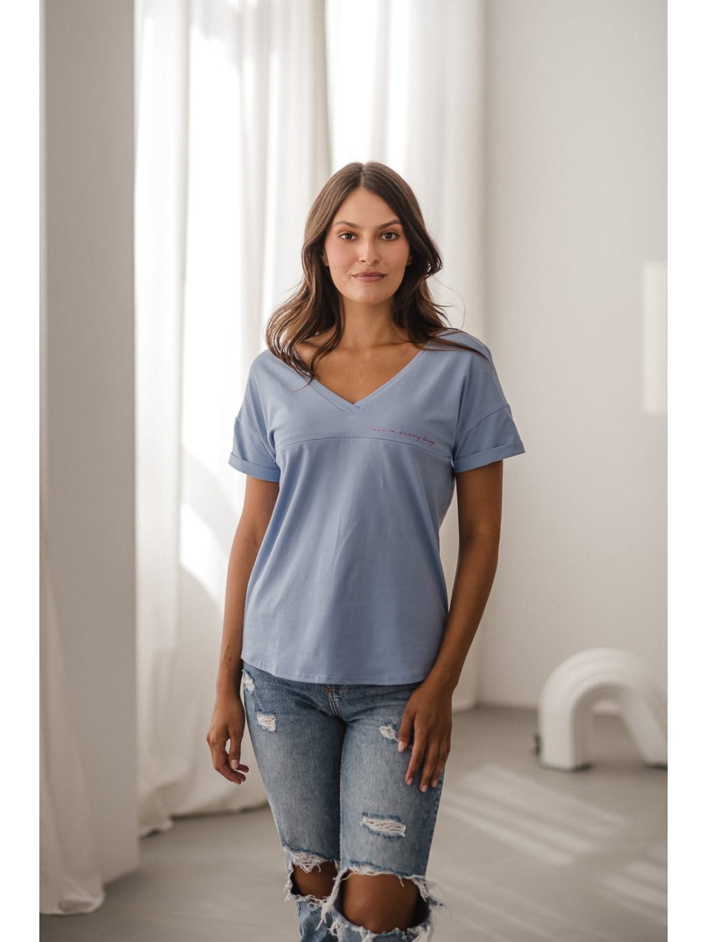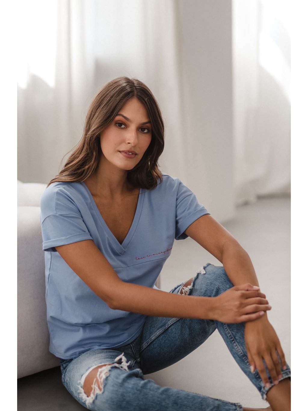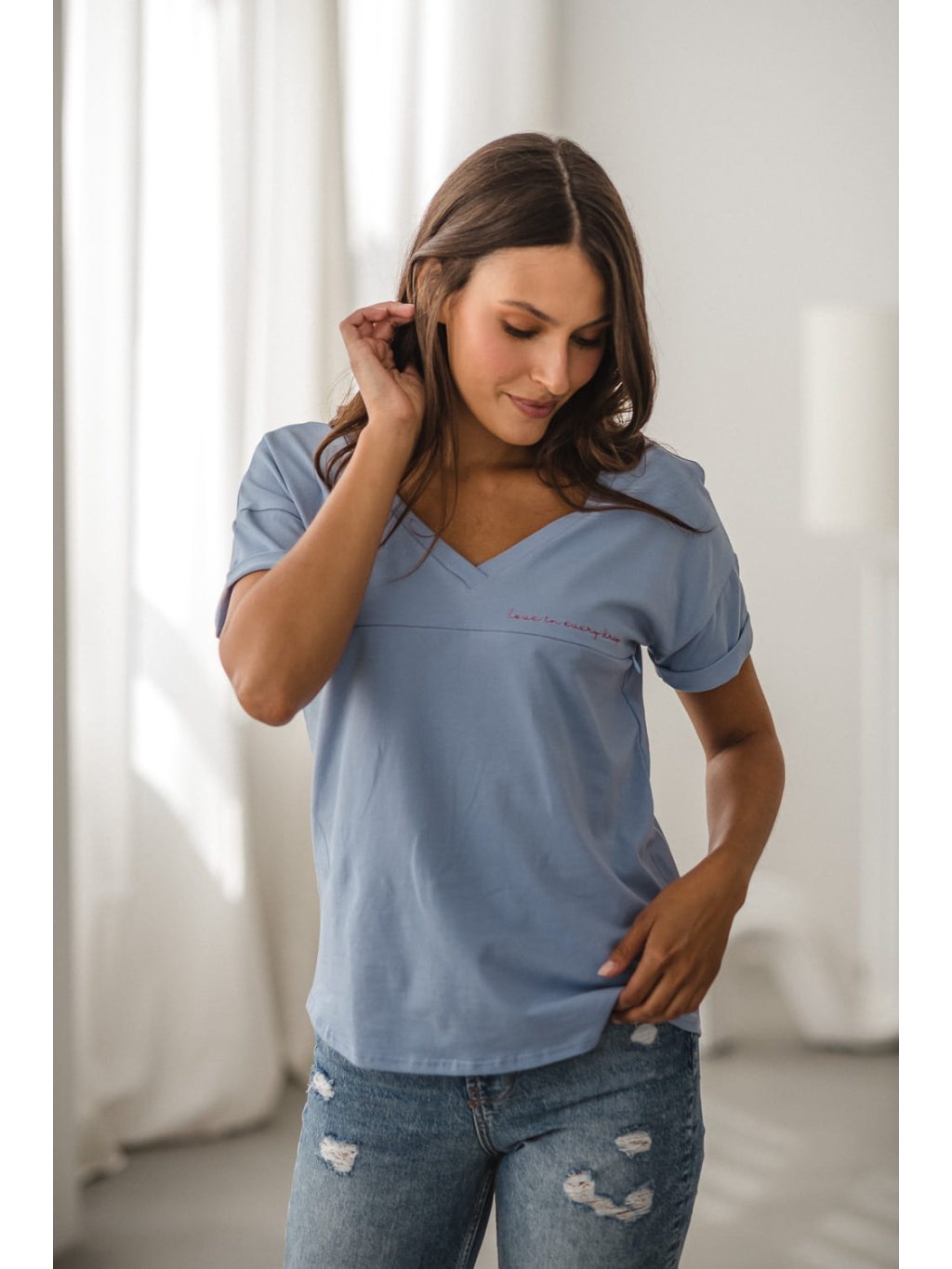 Bavlněné, těhotenské a kojící tričko M-shirt světle modré s výšivkou "love in every drop"