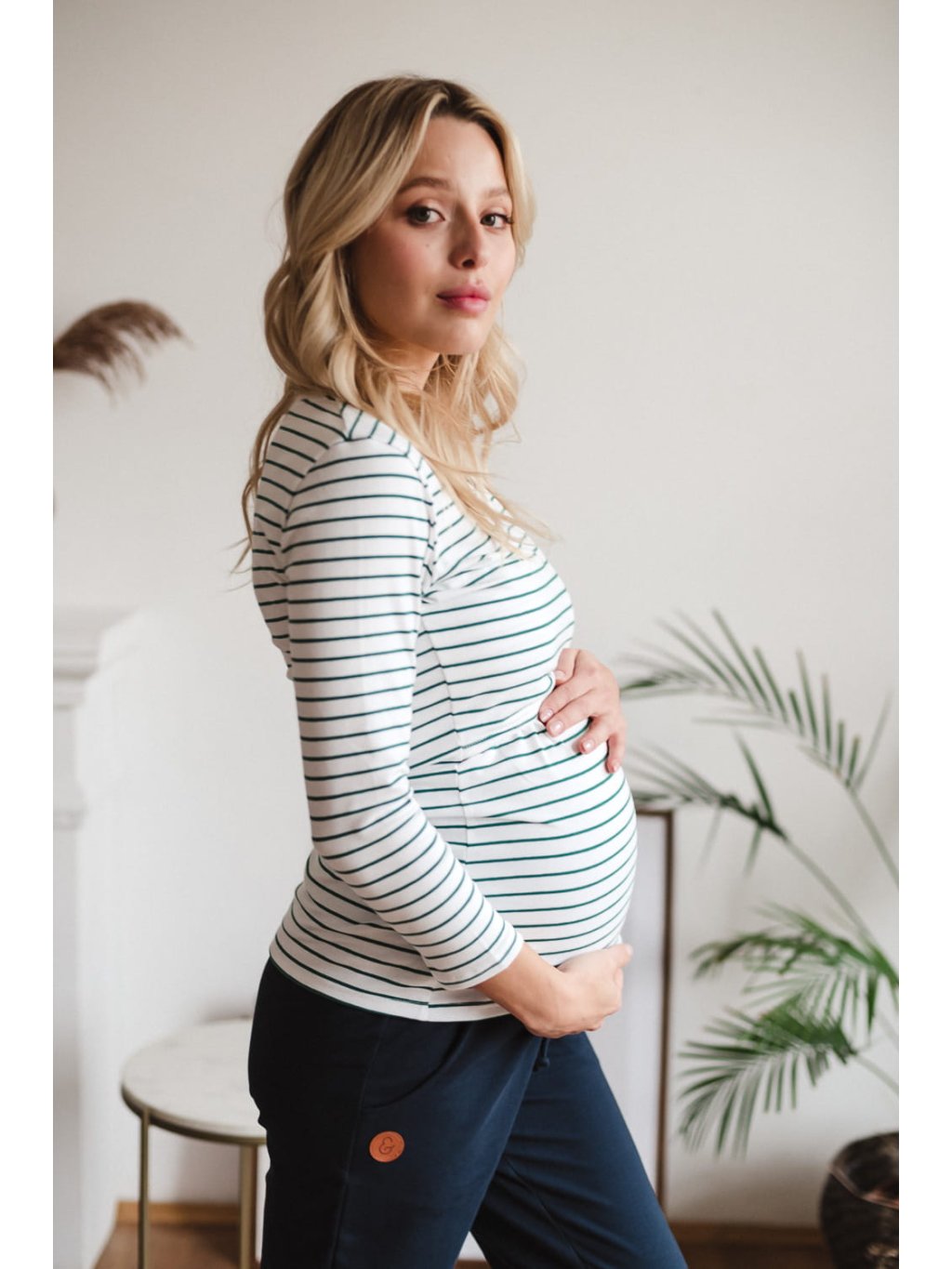Bavlněné, těhotenské a kojící tričko Milk Shirt zeleno bílé proužky 7/8 rukáv