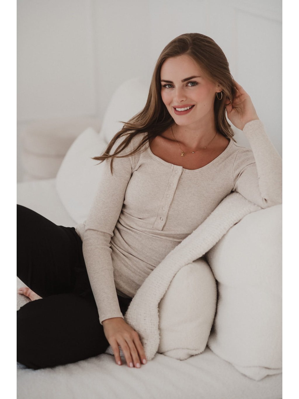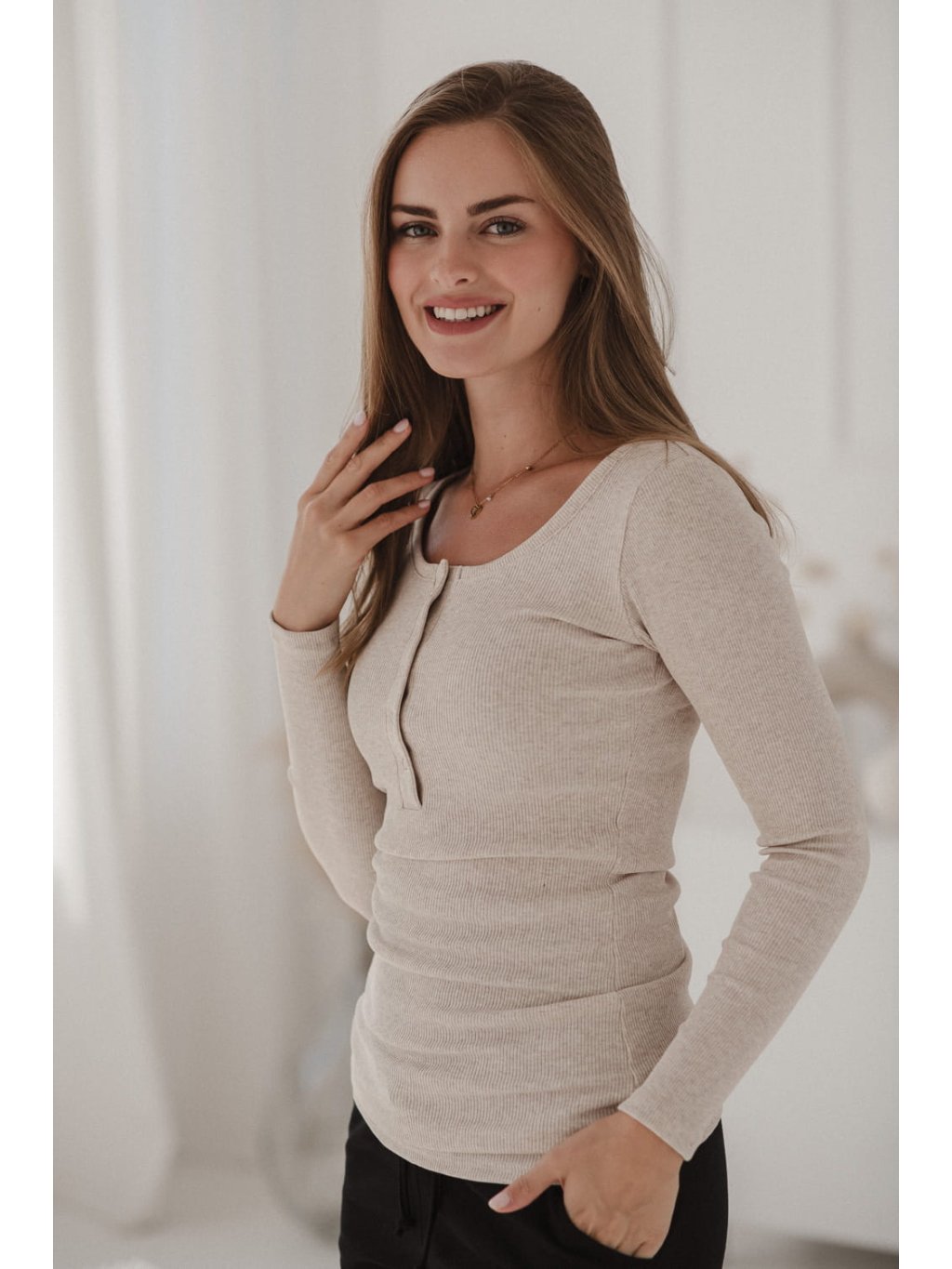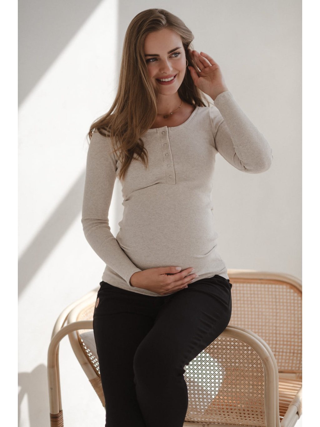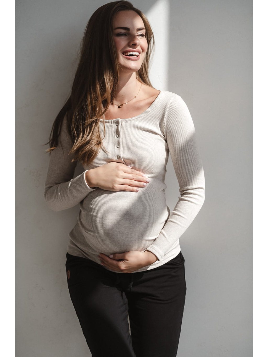 Bavlněné, těhotenské a kojící tričko z žebrovaného úpletu Tummy latte melange