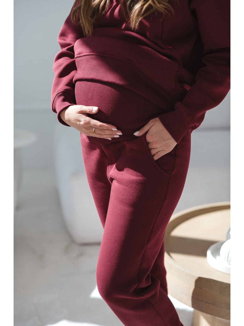 Bavlněné, zateplené těhotenské tepláky Motherhood burgundy