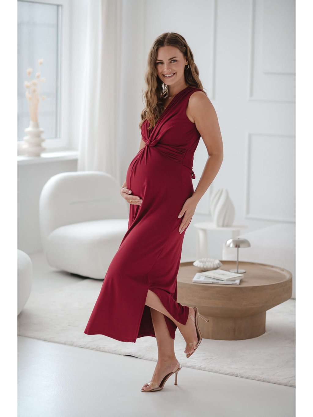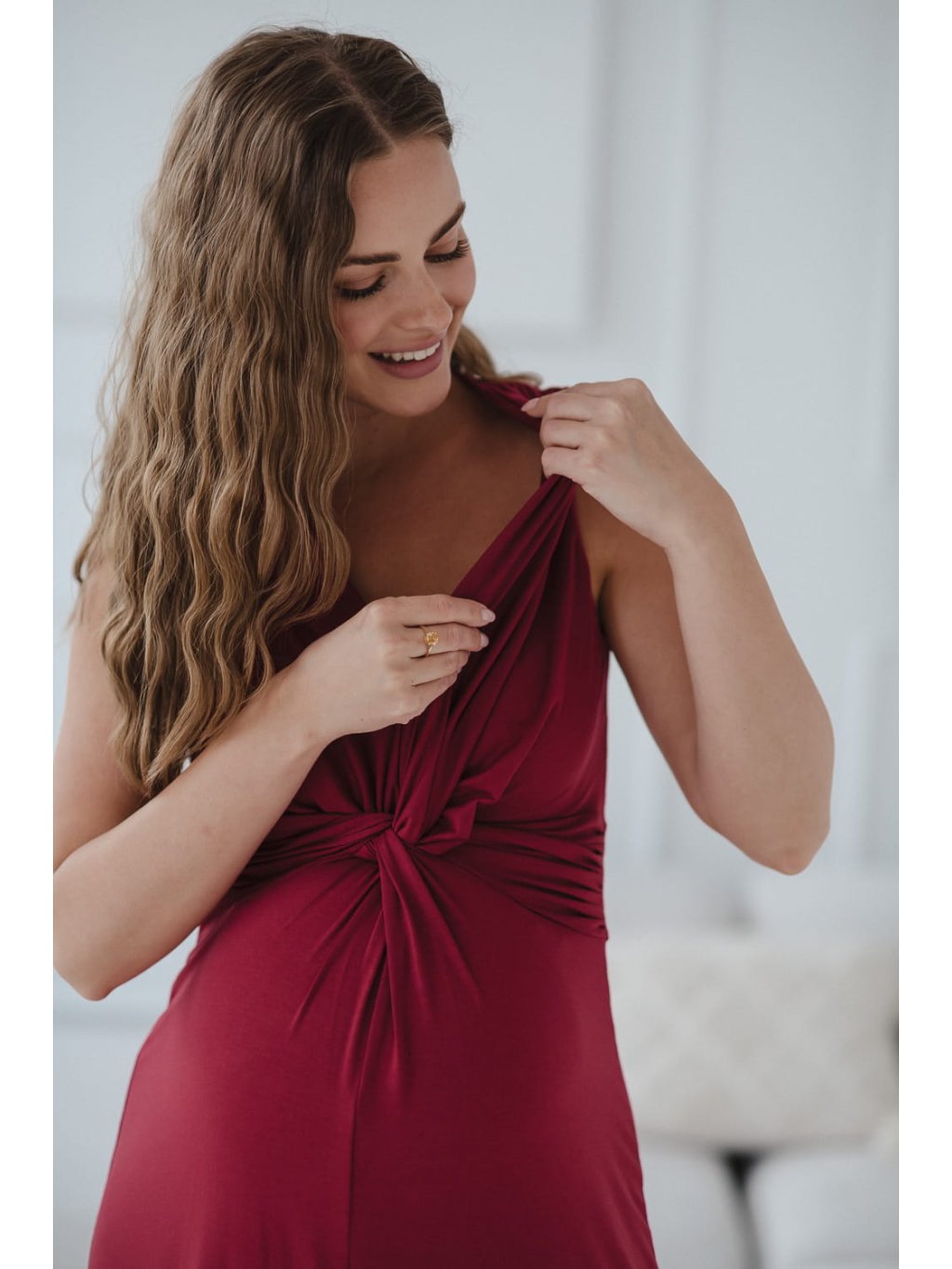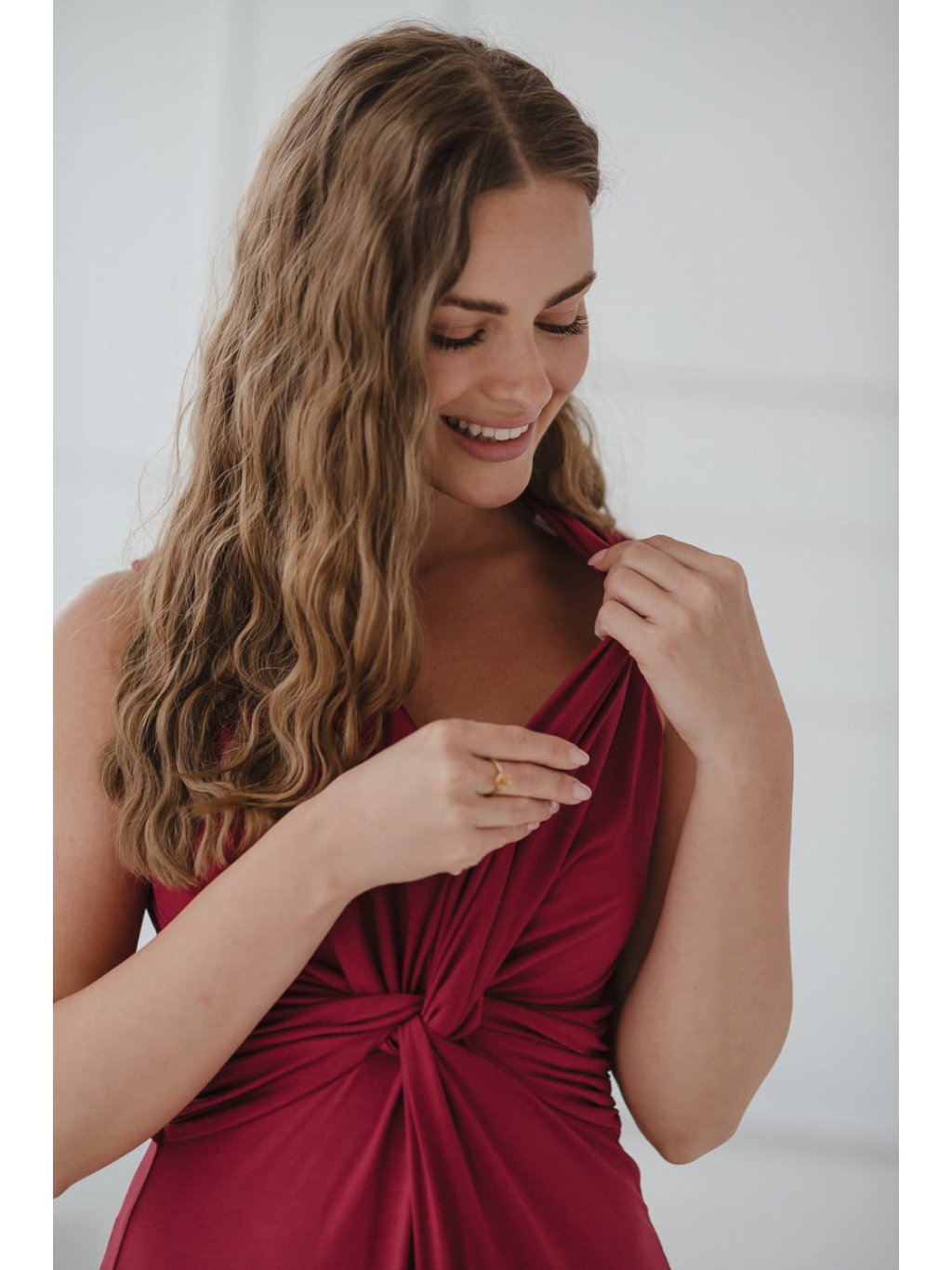 MAXI těhotenské a kojící šaty s uvazováním Loop bordó