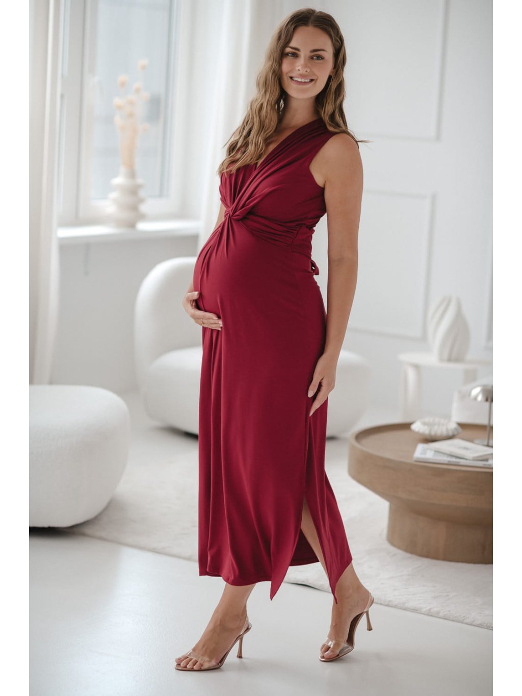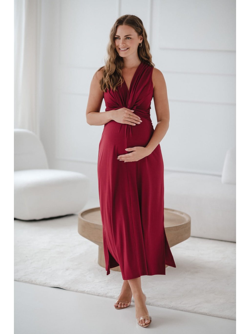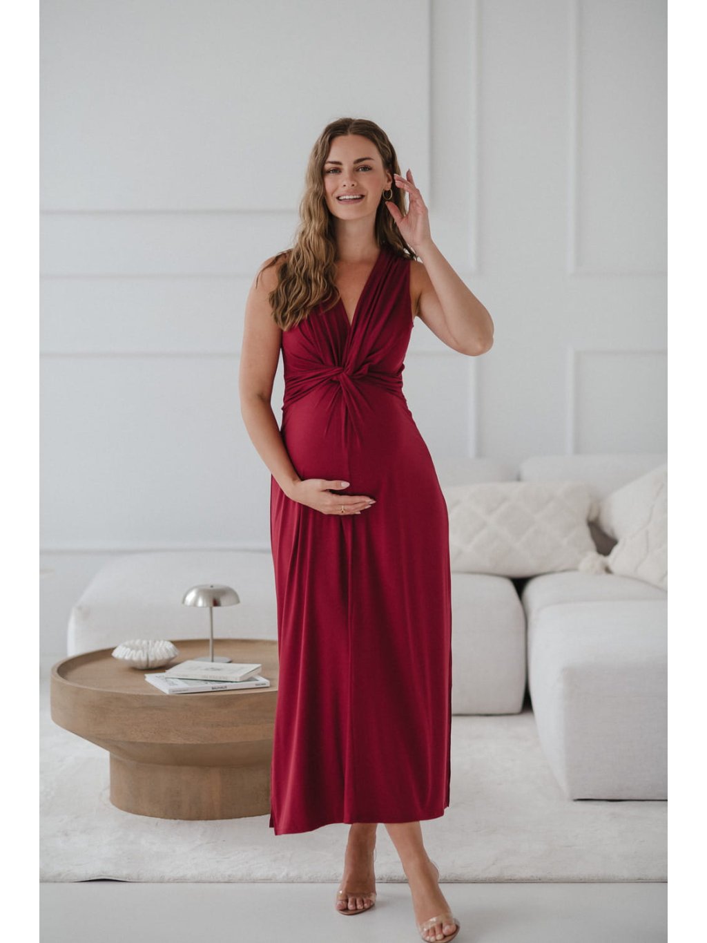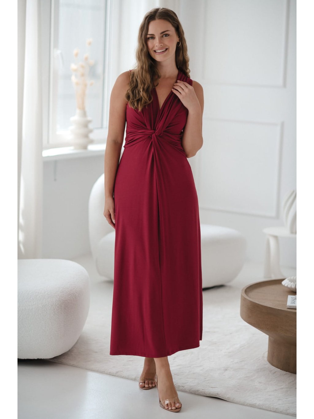 MAXI těhotenské a kojící šaty s uvazováním Loop bordó