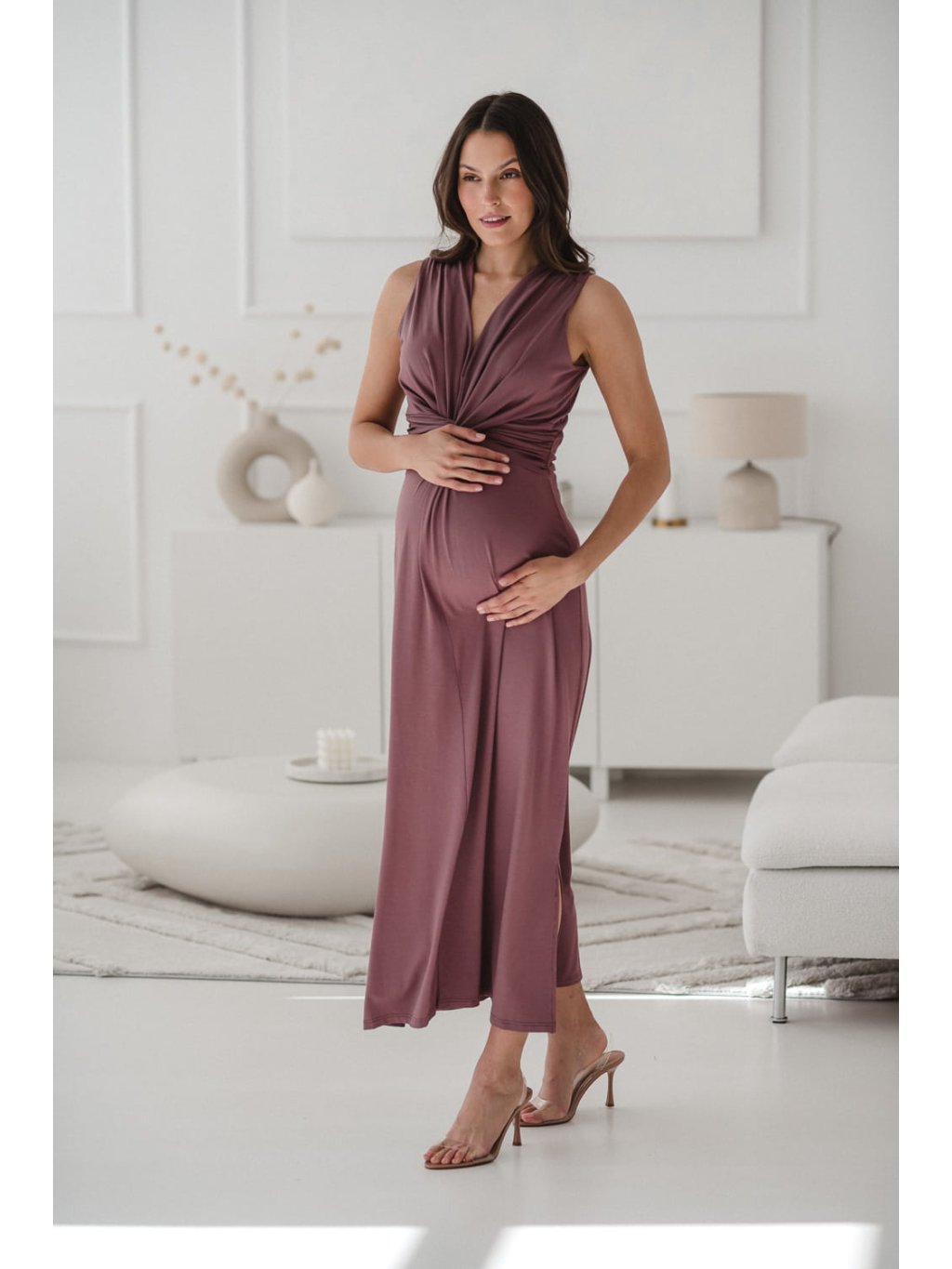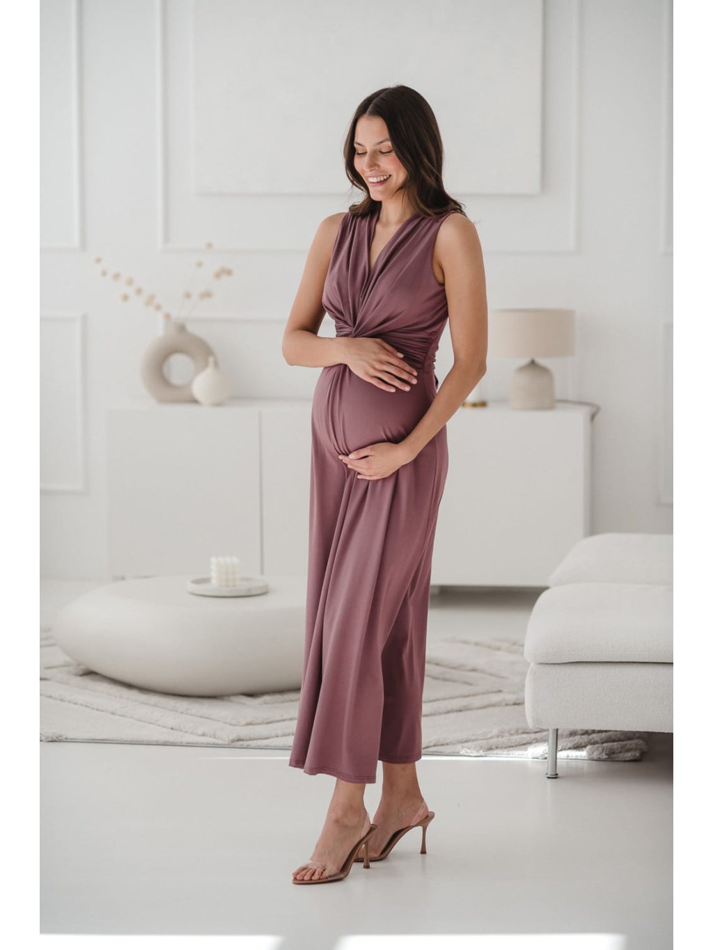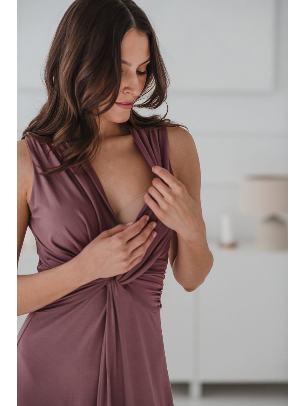 MAXI těhotenské a kojící šaty s uvazováním Loop rose brown