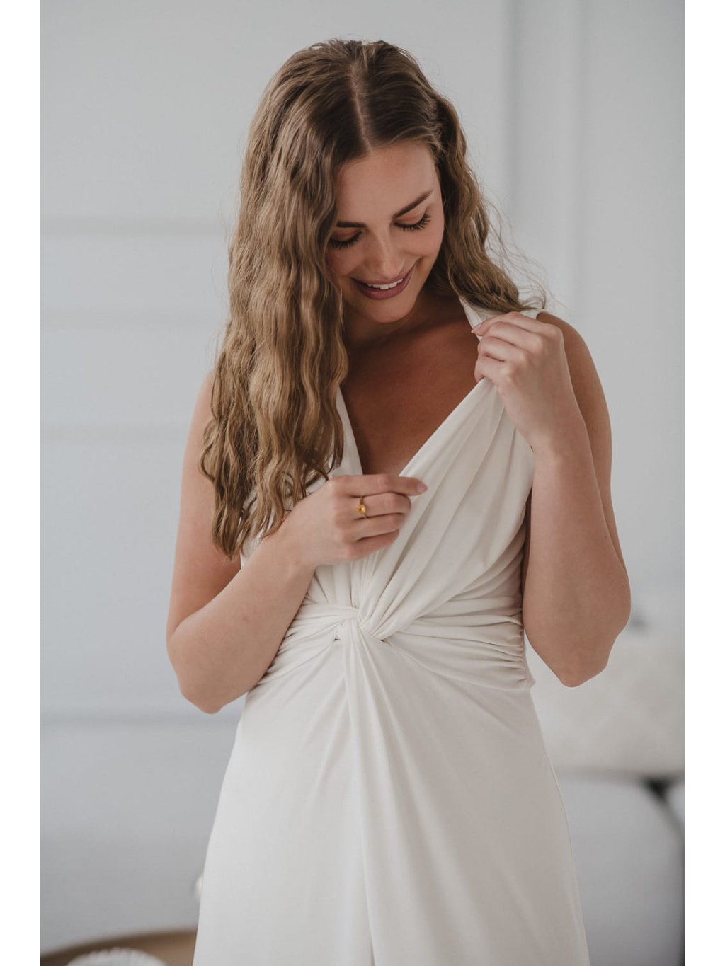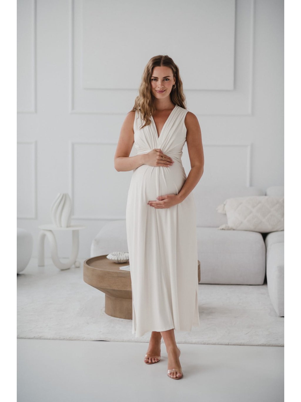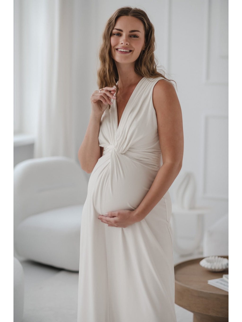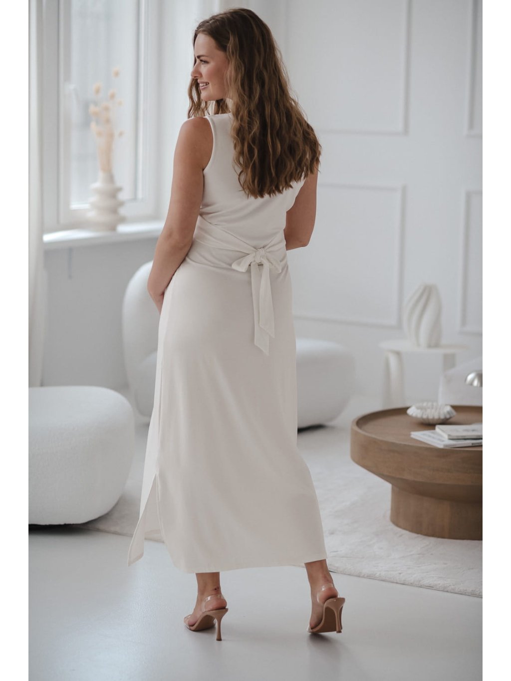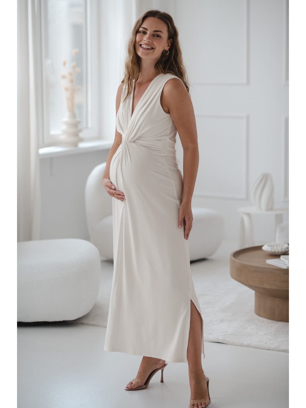 MAXI těhotenské a kojící šaty s uvazováním Loop smetanově bílé