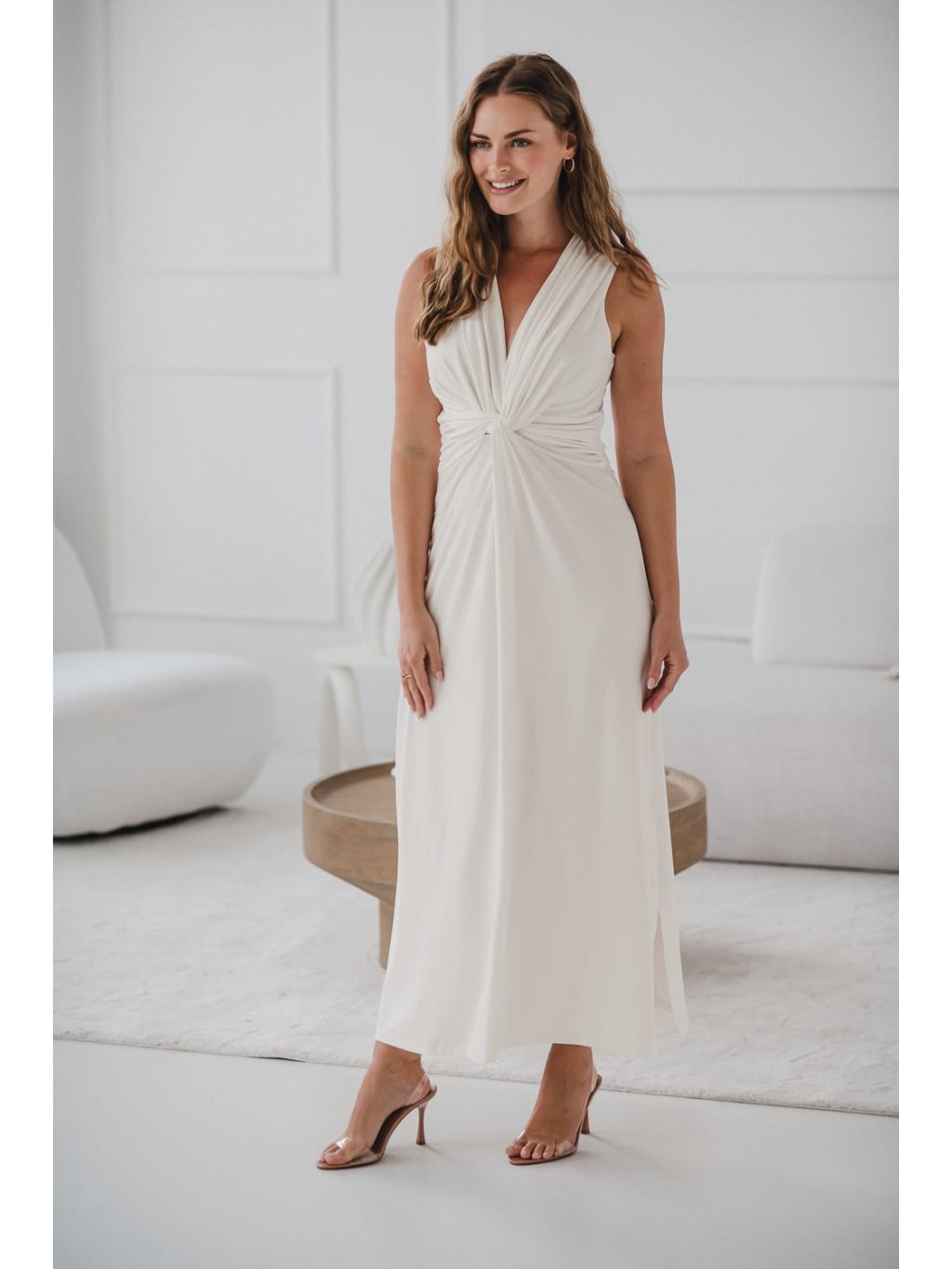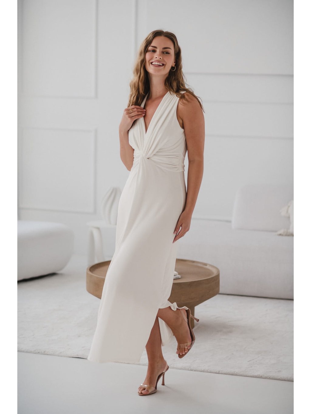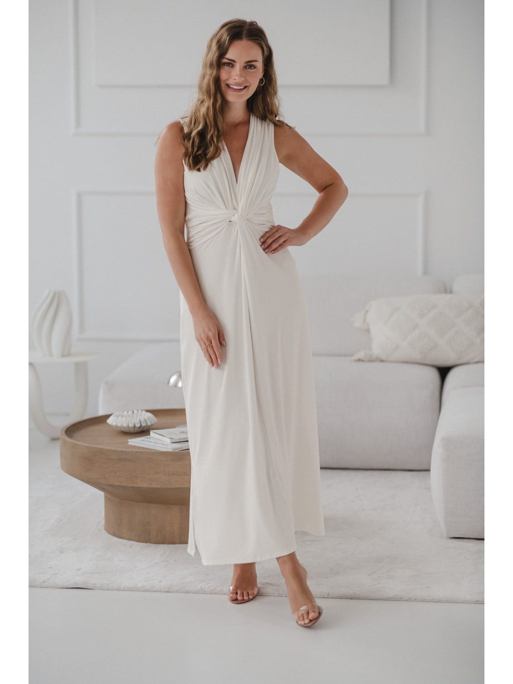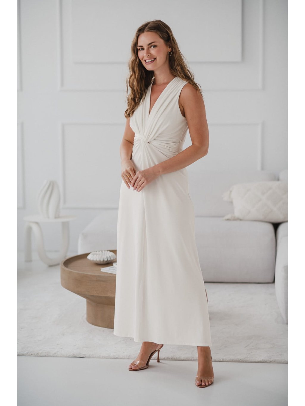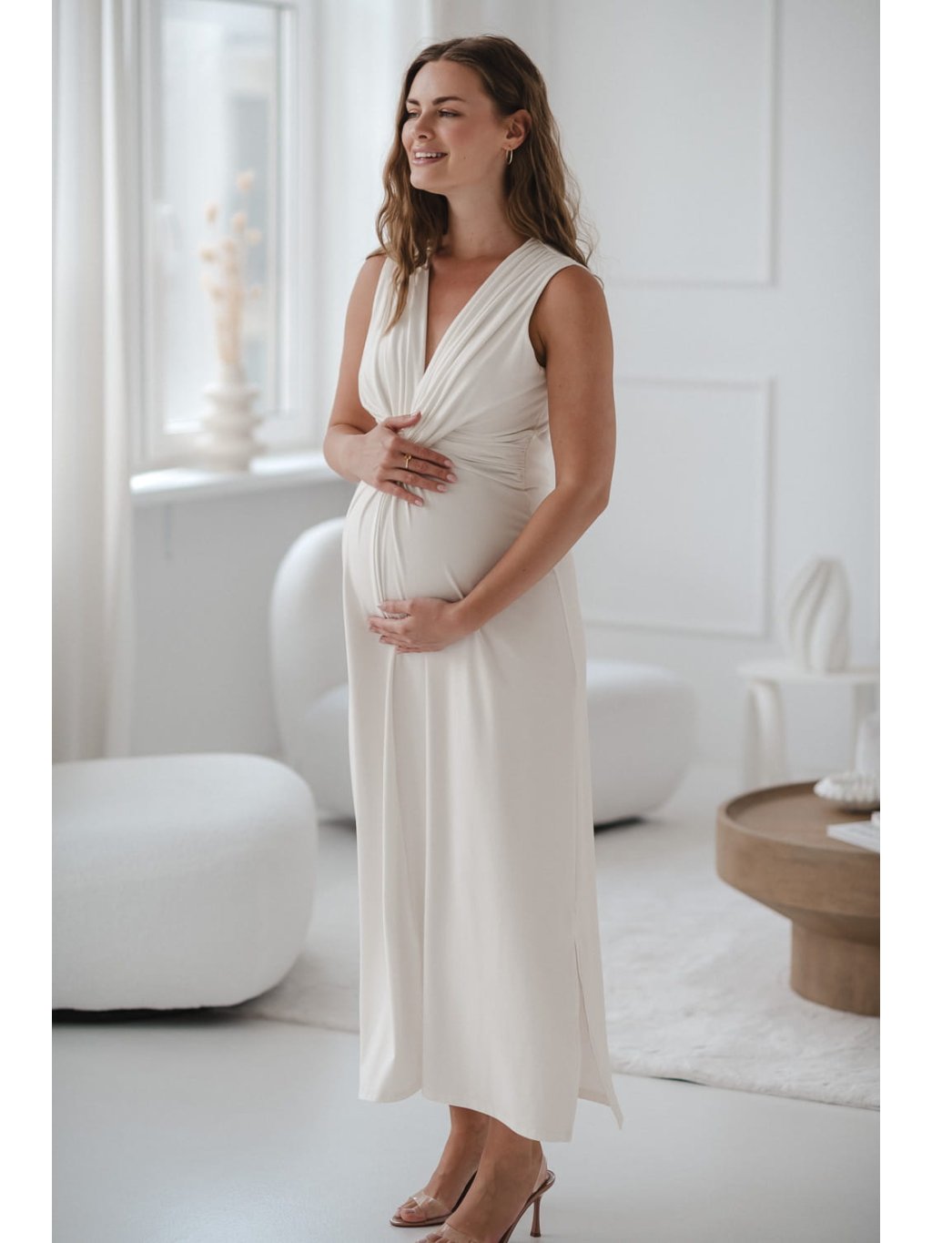 MAXI těhotenské a kojící šaty s uvazováním Loop smetanově bílé