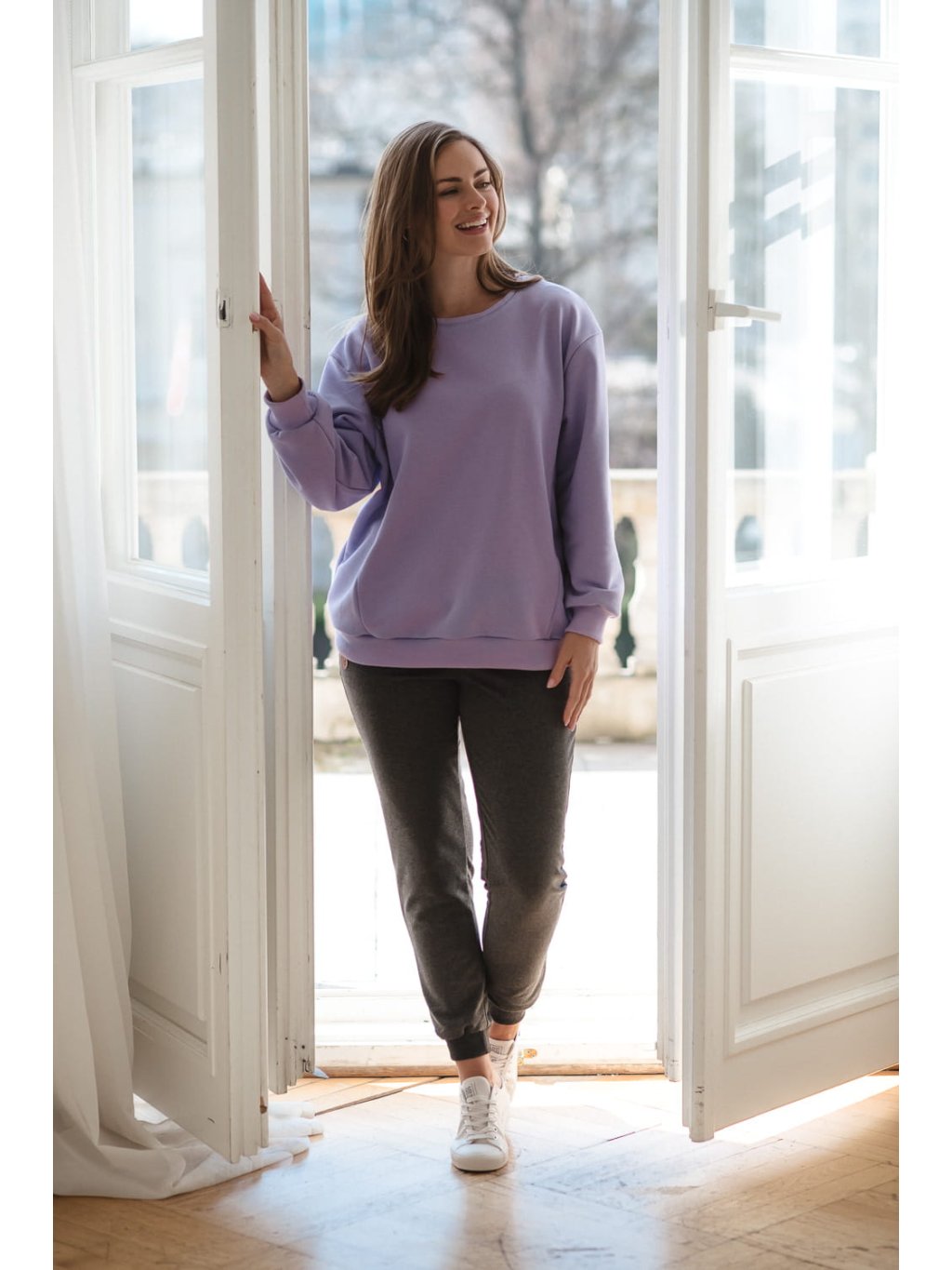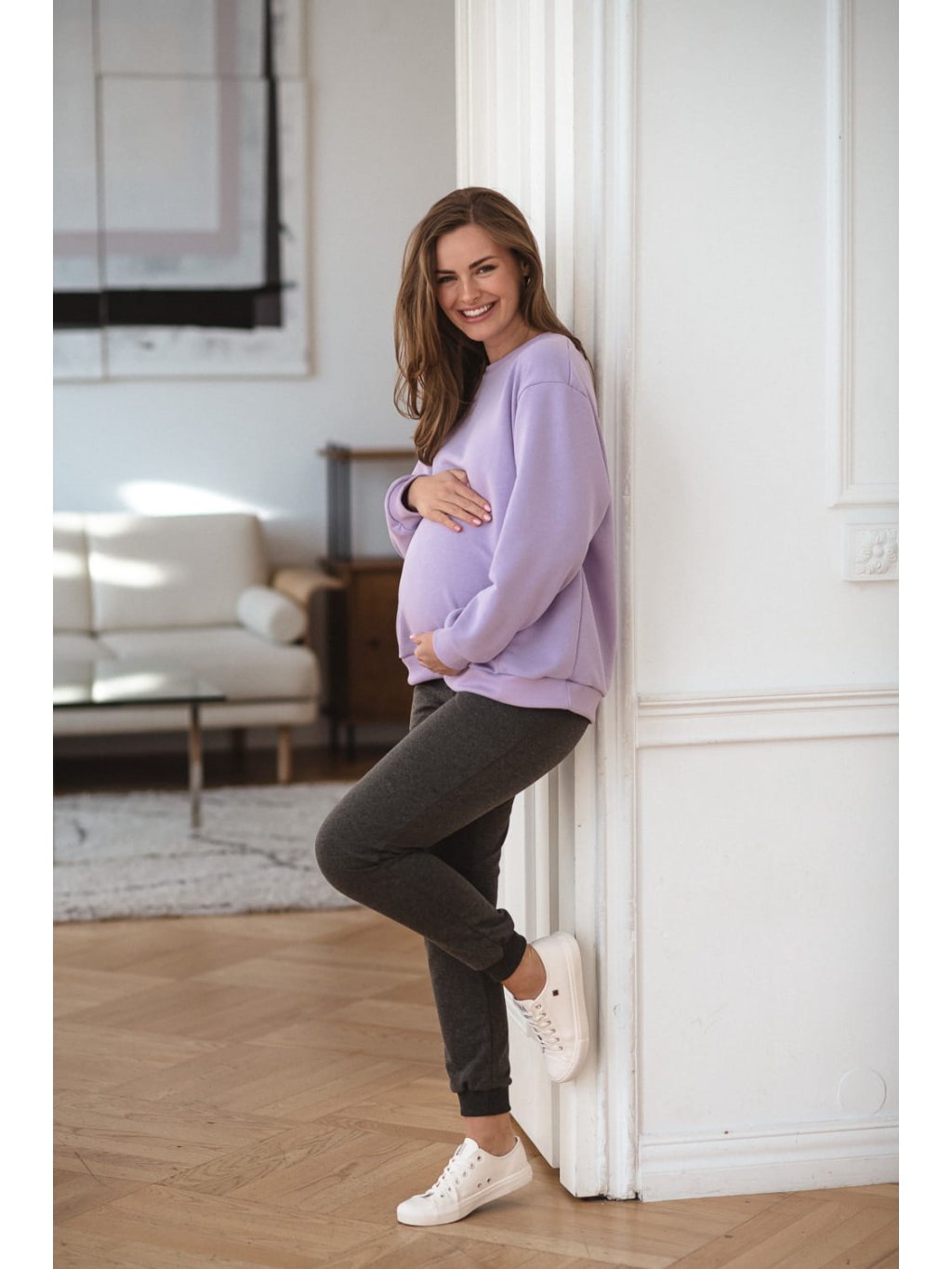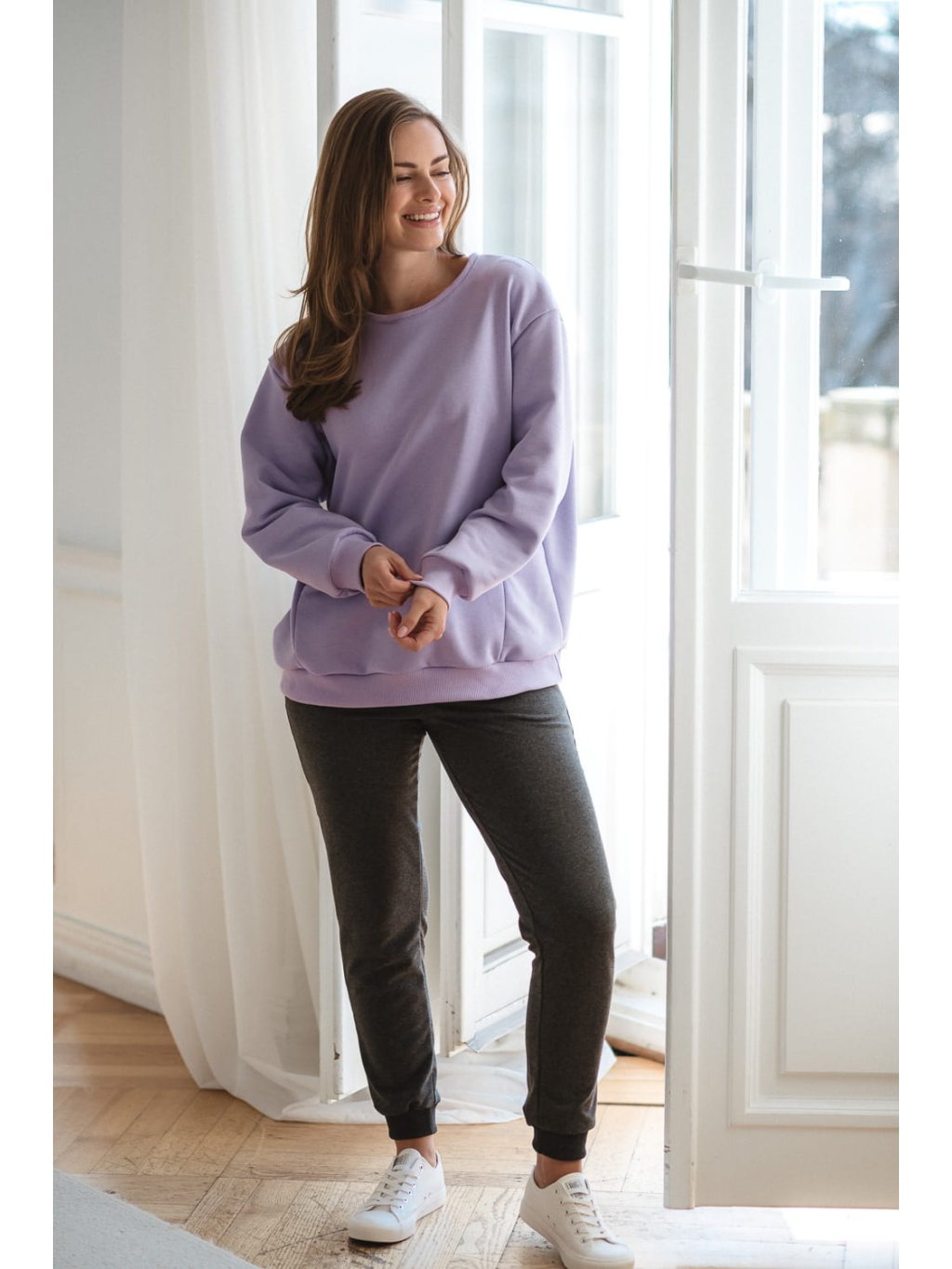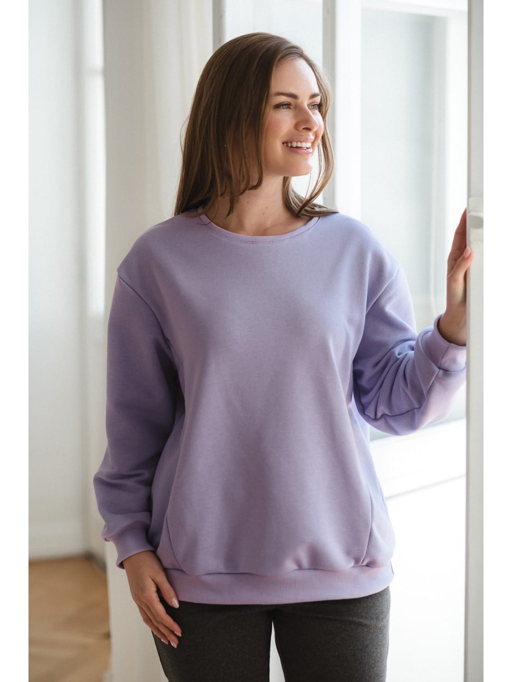 Oversize těhotenská a kojící mikina Milk It Easy lilie-šeřík bavlněná
