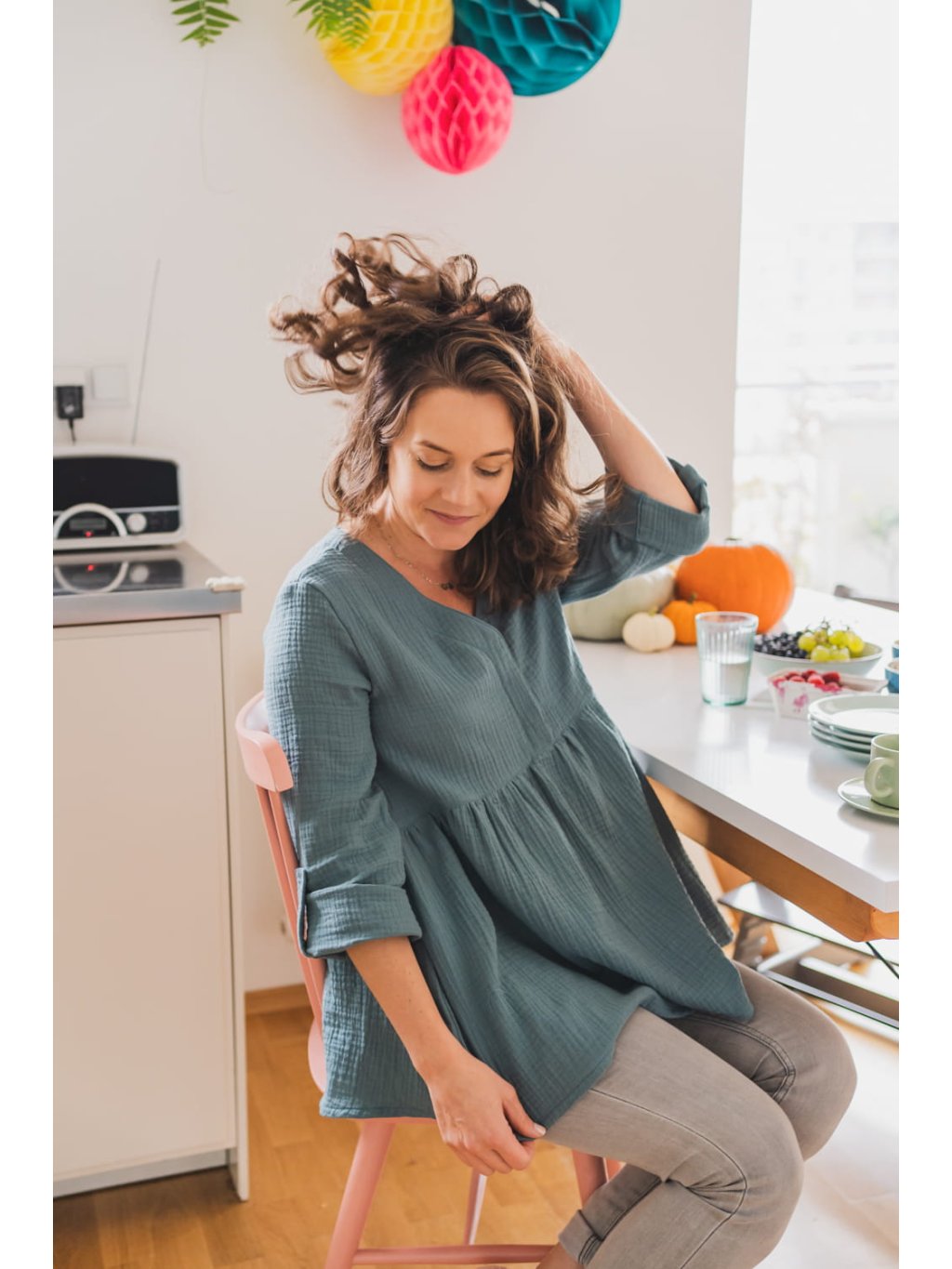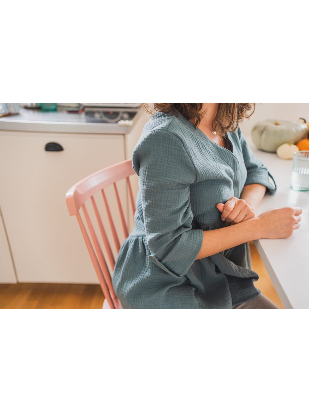 Těhotenská a kojící tunika z mušelínu Mother Nature eukalyptus