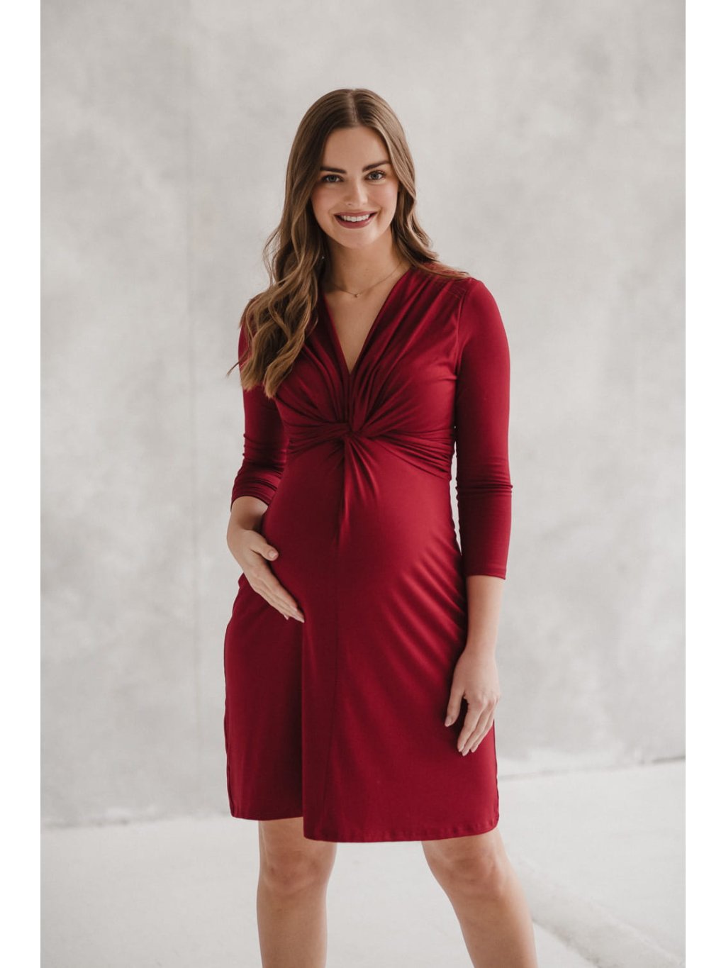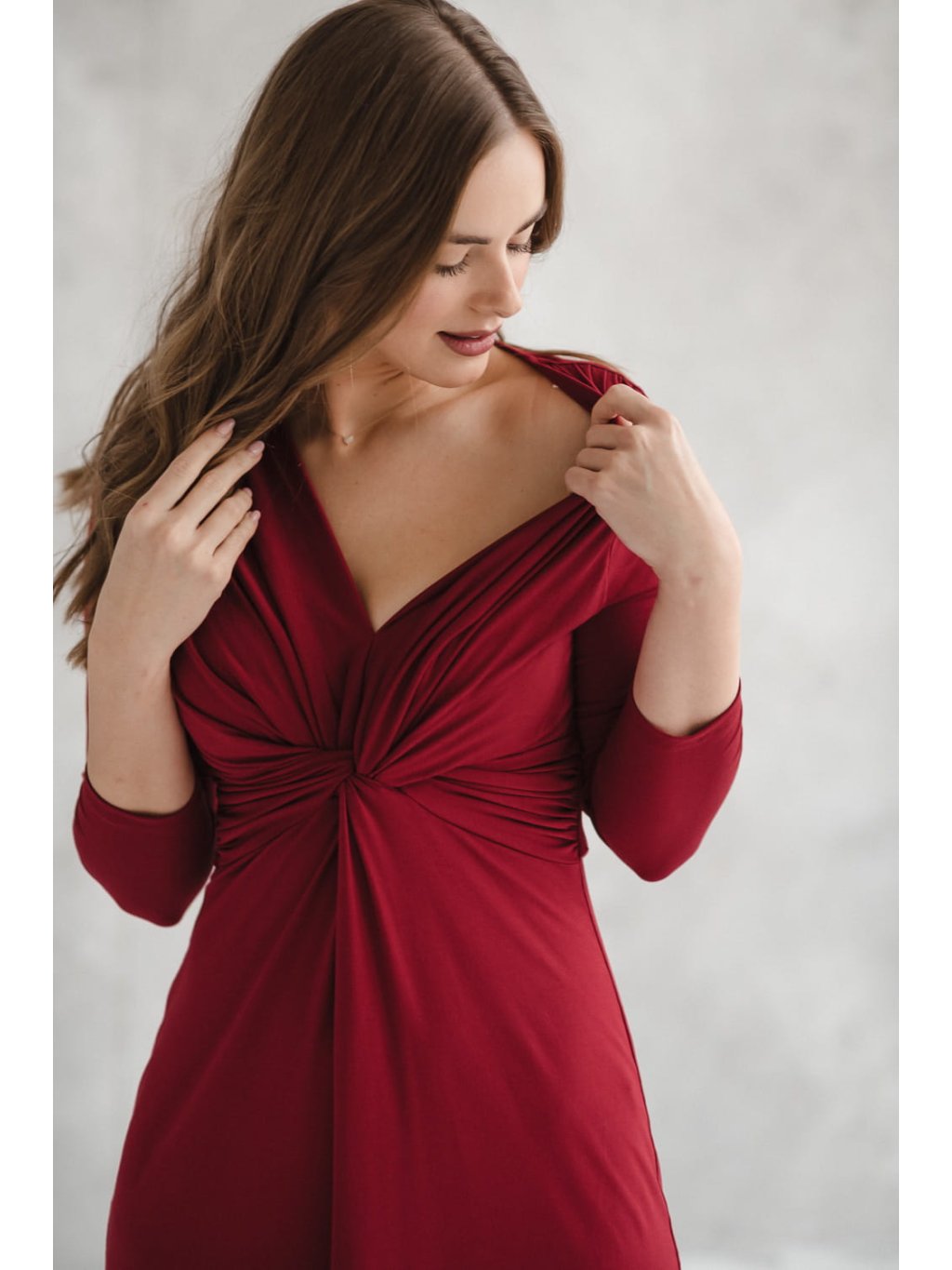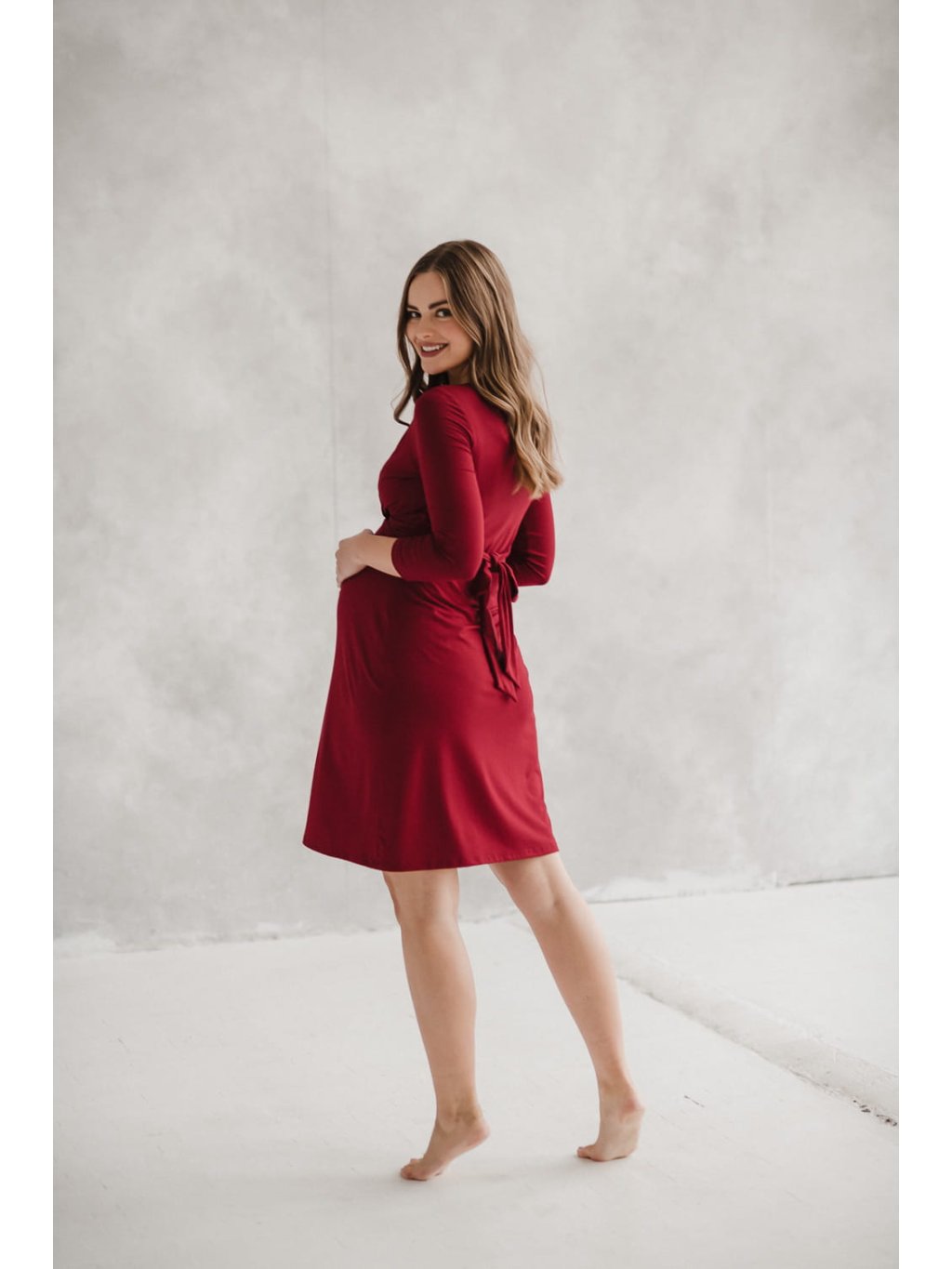 Těhotenské a kojící šaty s uvazováním Loop bordó 7/8 rukáv