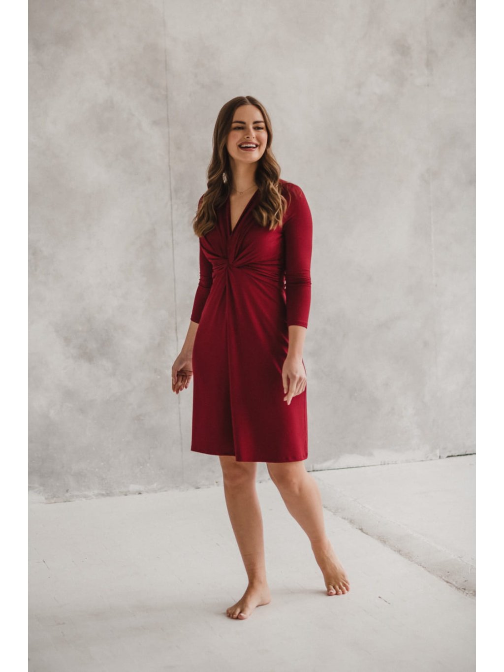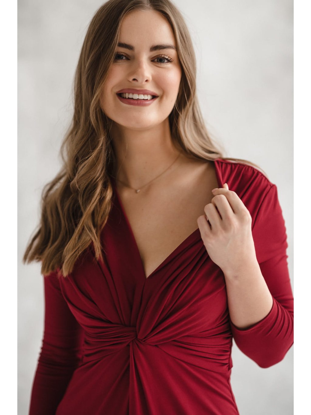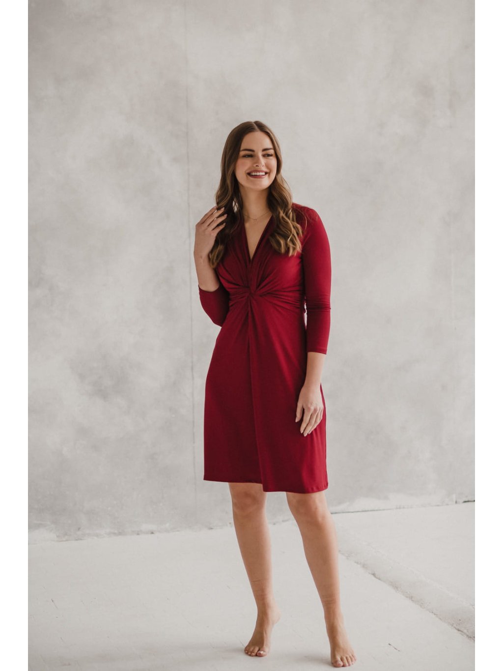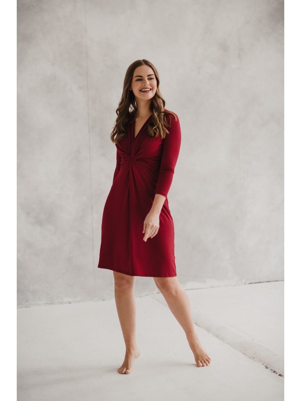 Těhotenské a kojící šaty s uvazováním Loop bordó 7/8 rukáv