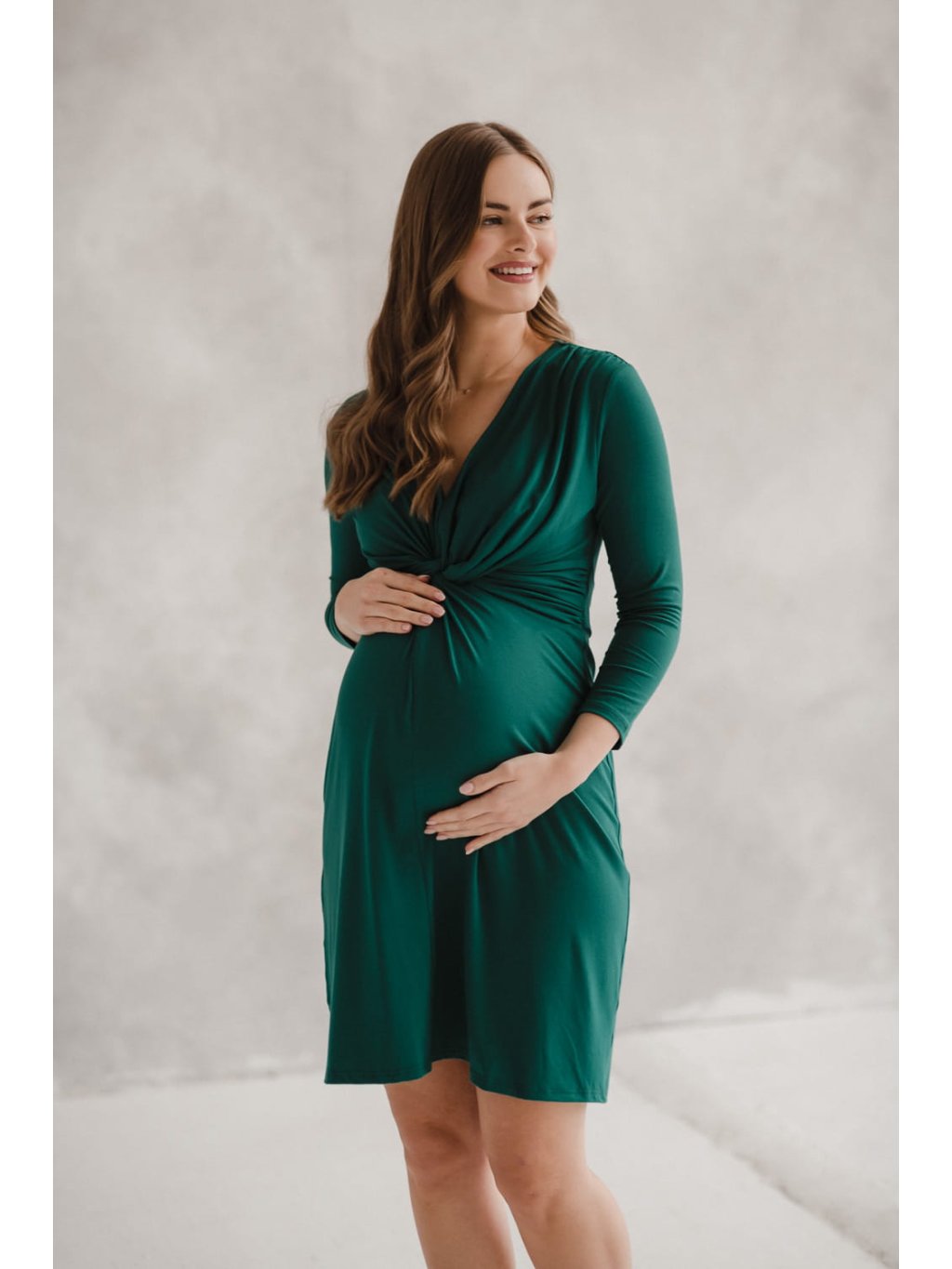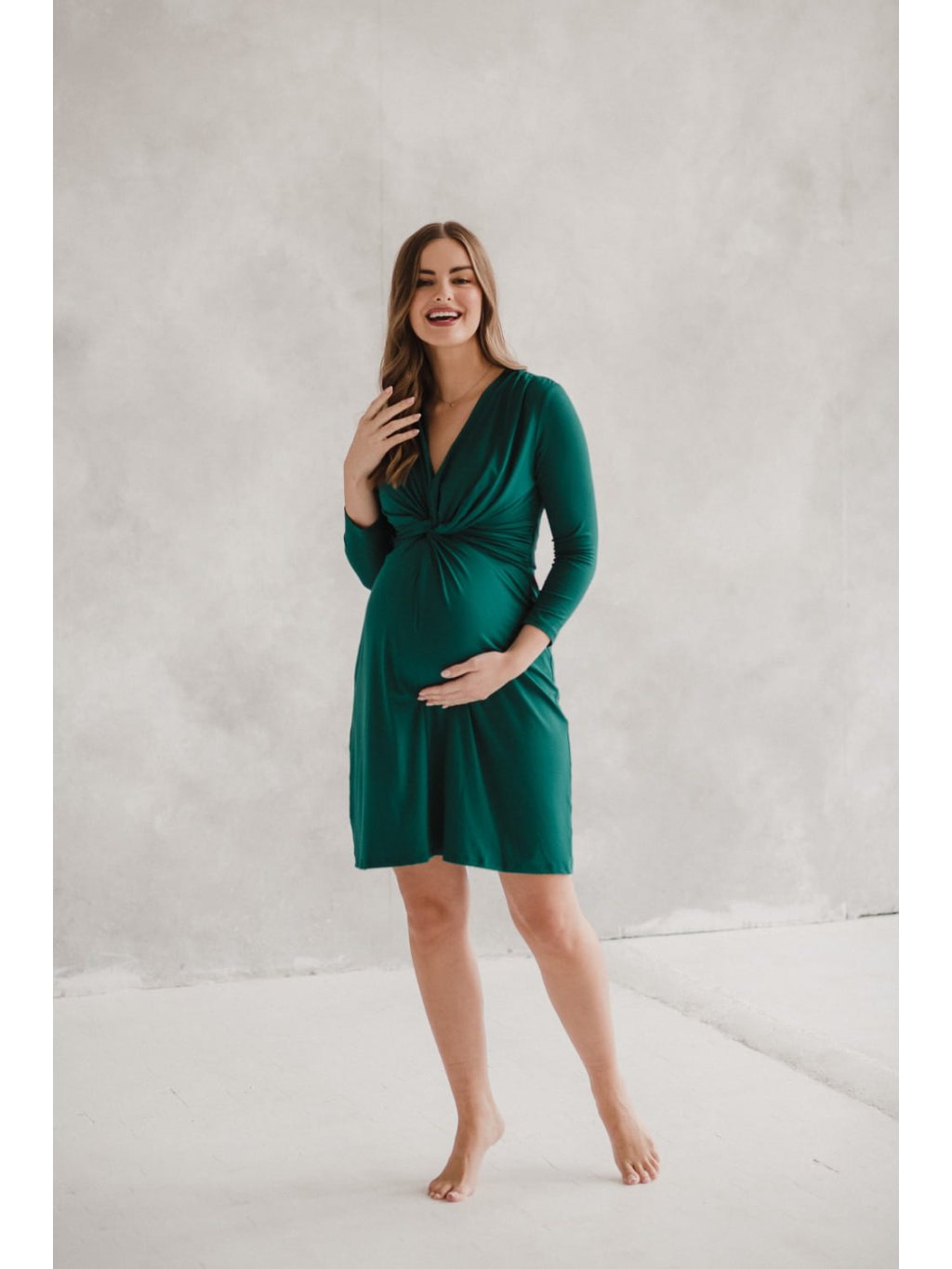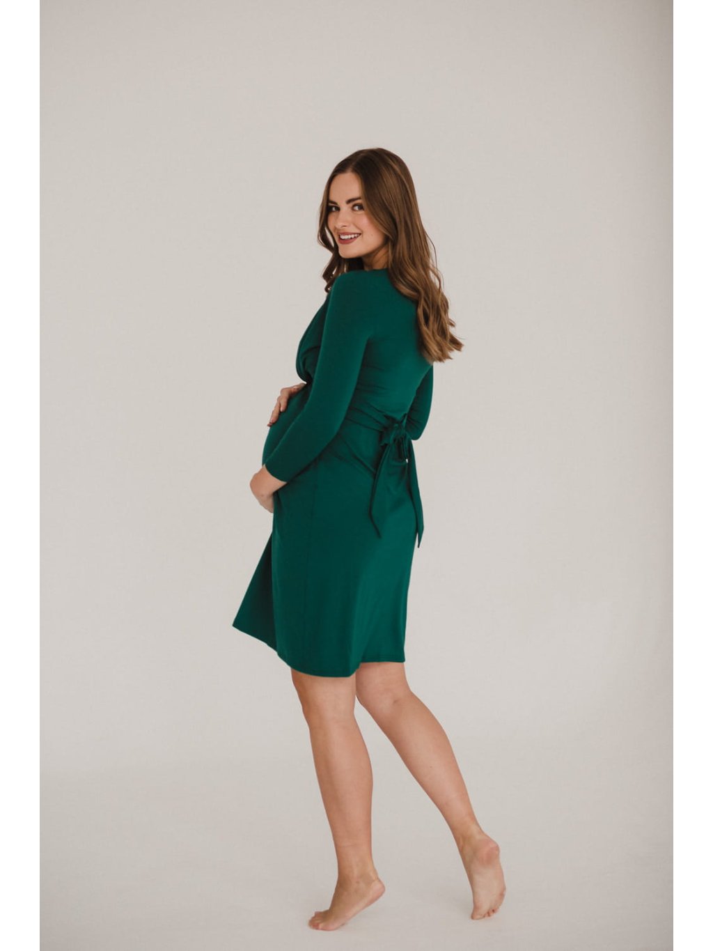 Těhotenské a kojící šaty s uvazováním Loop láhvově zelené 7/8 rukáv