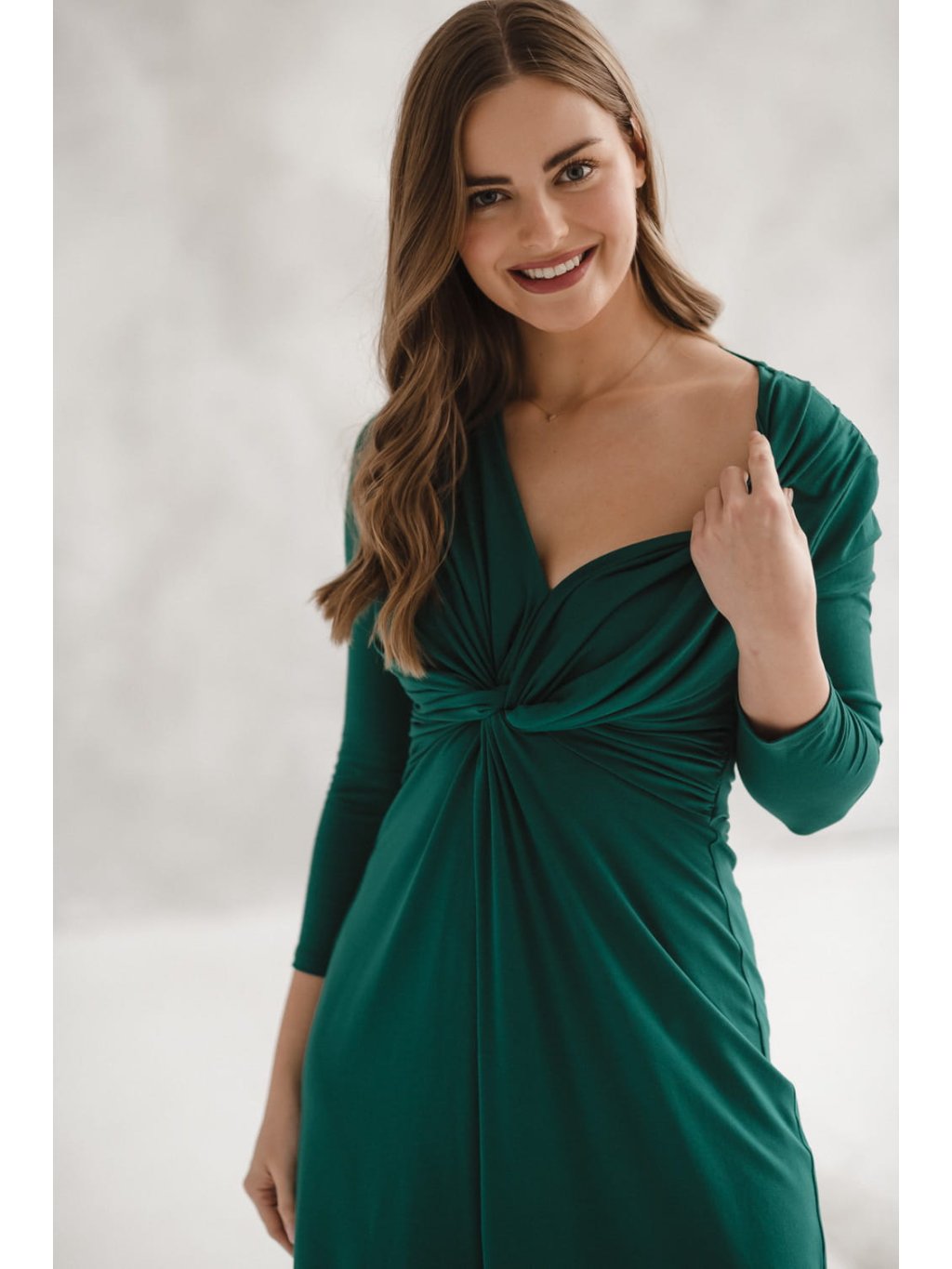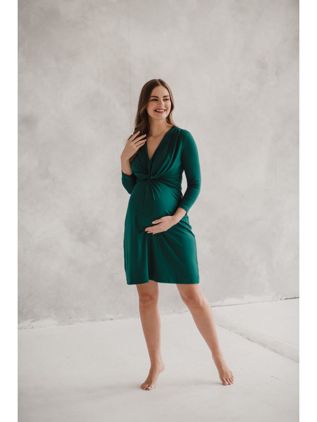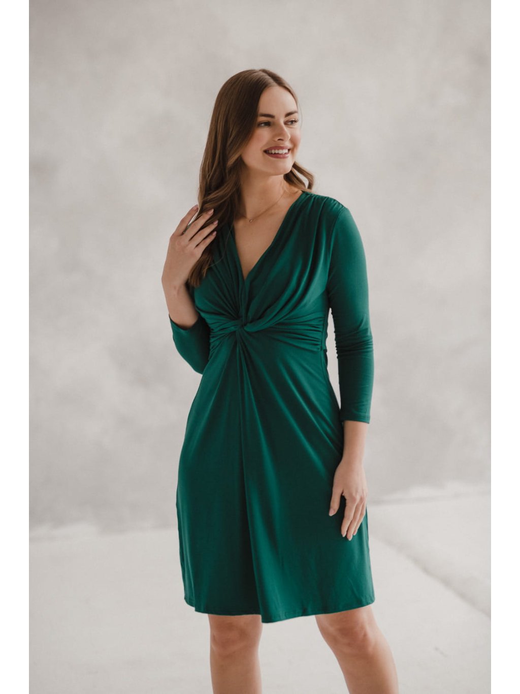 Těhotenské a kojící šaty s uvazováním Loop láhvově zelené 7/8 rukáv