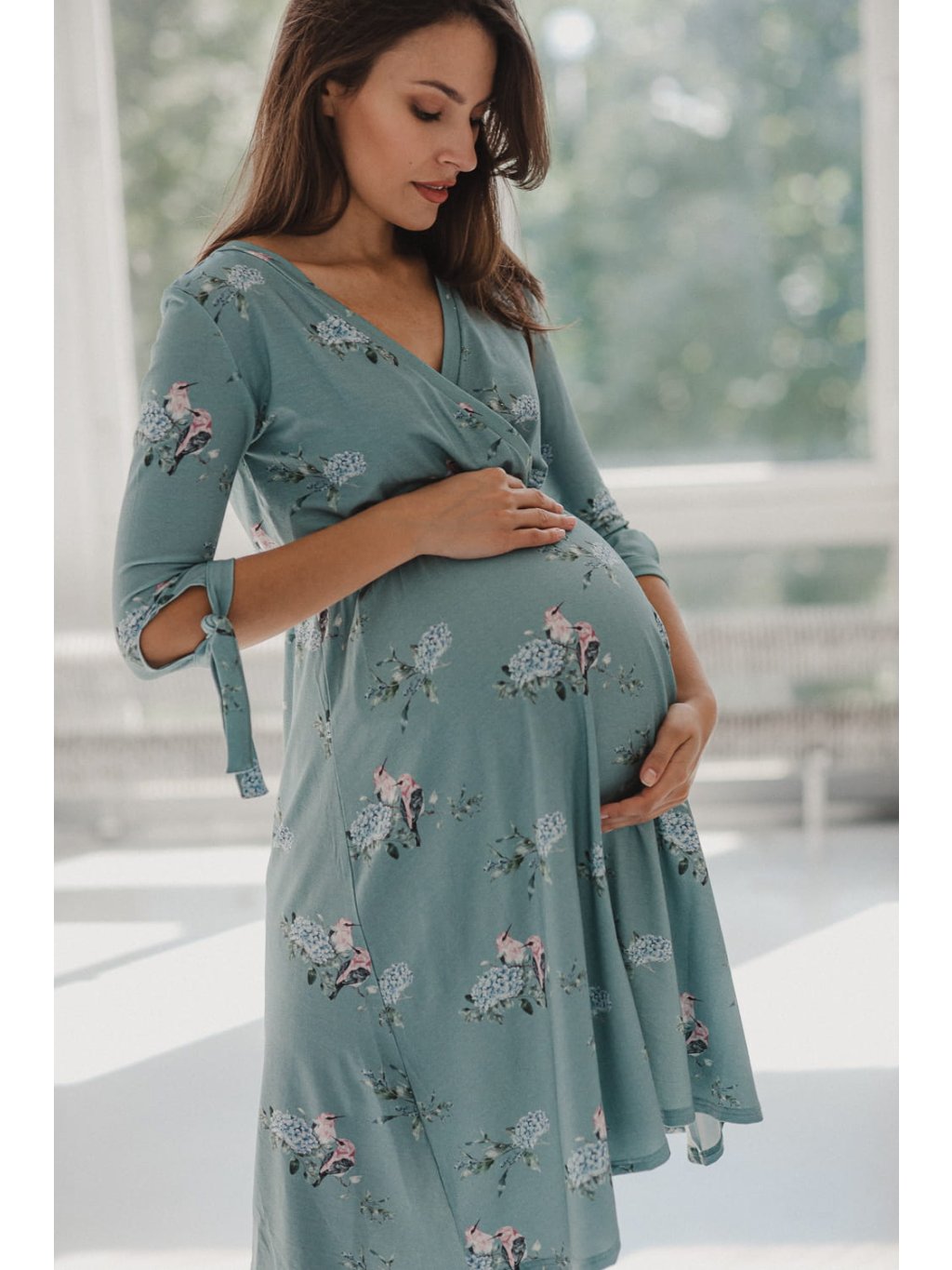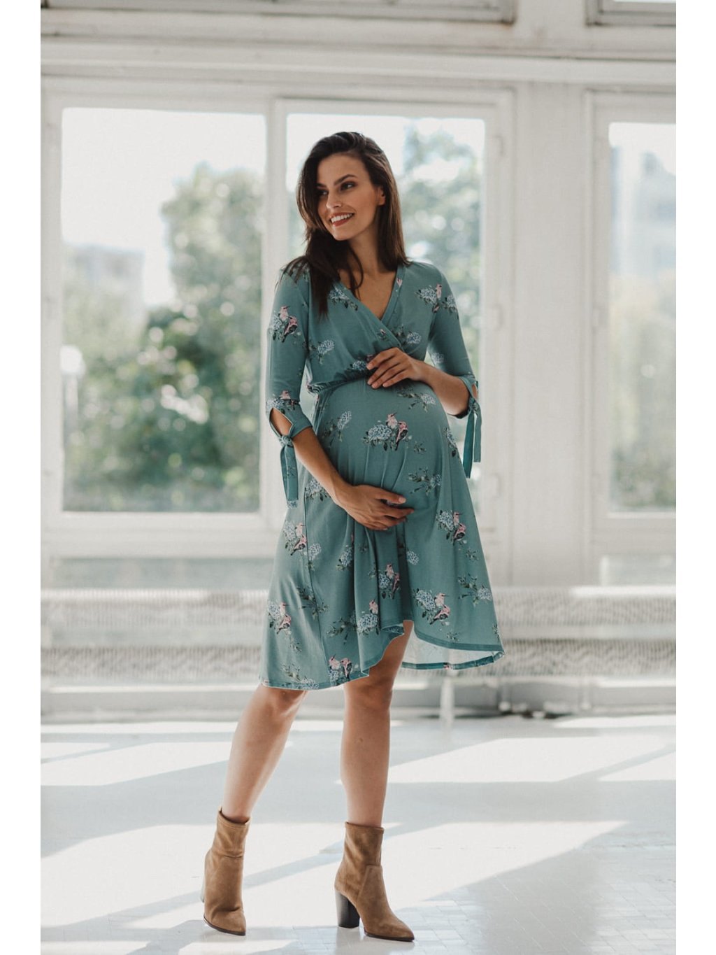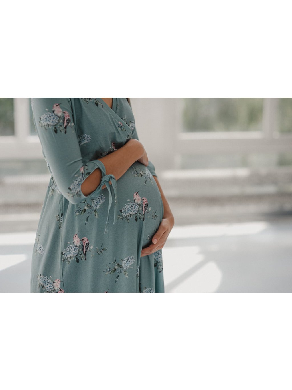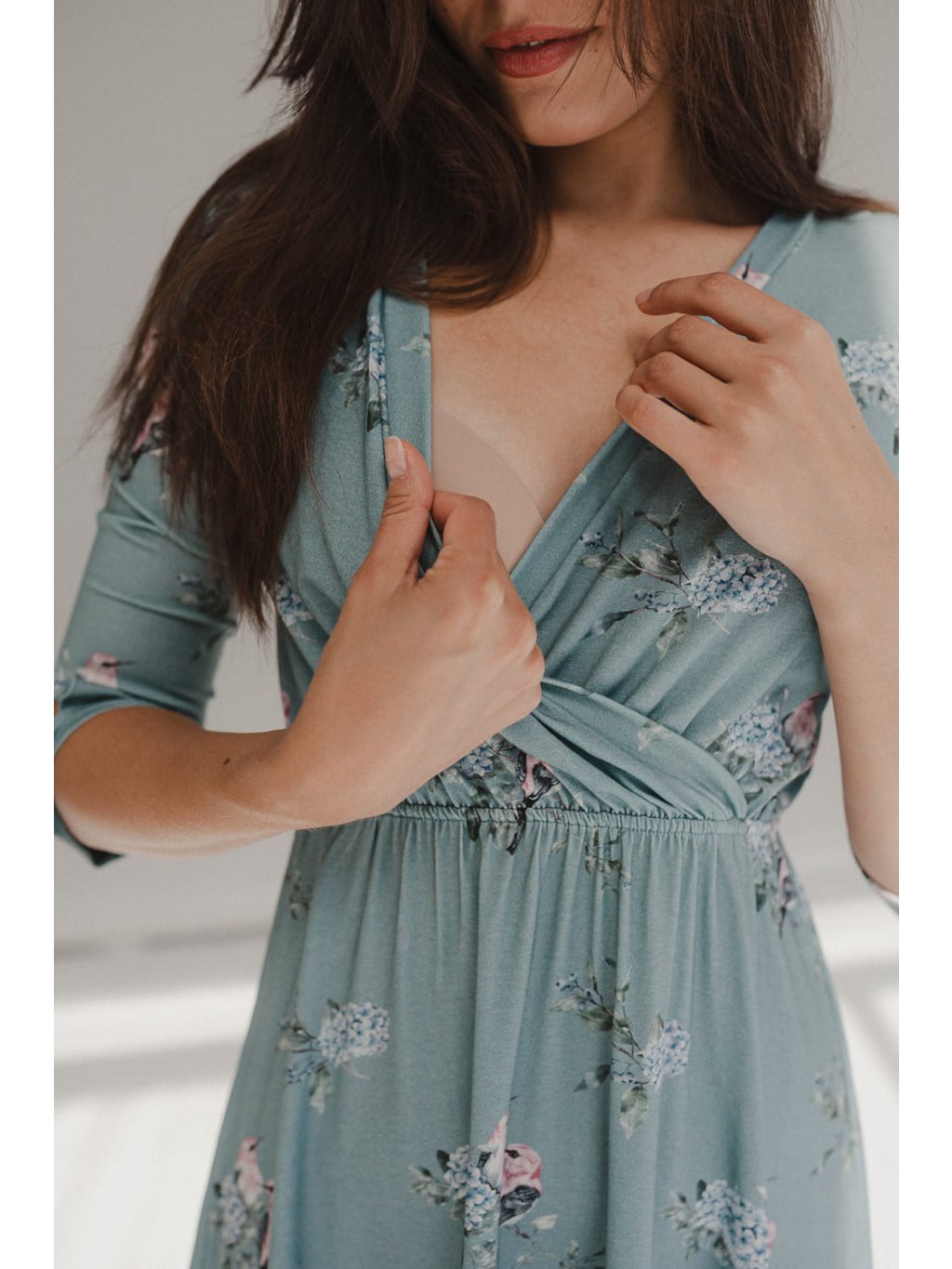 Těhotenské a kojící šaty Two ways MIDI eukalypt hortenzie 3/4 rukáv