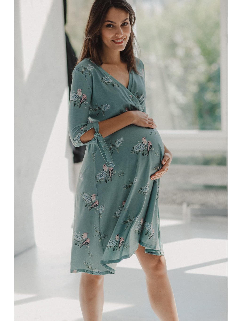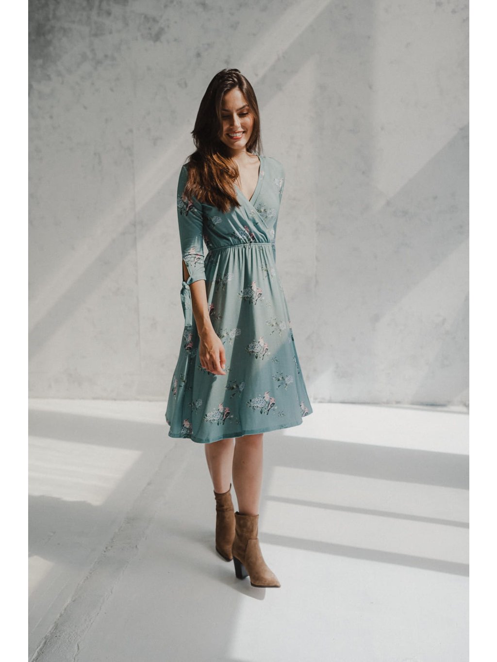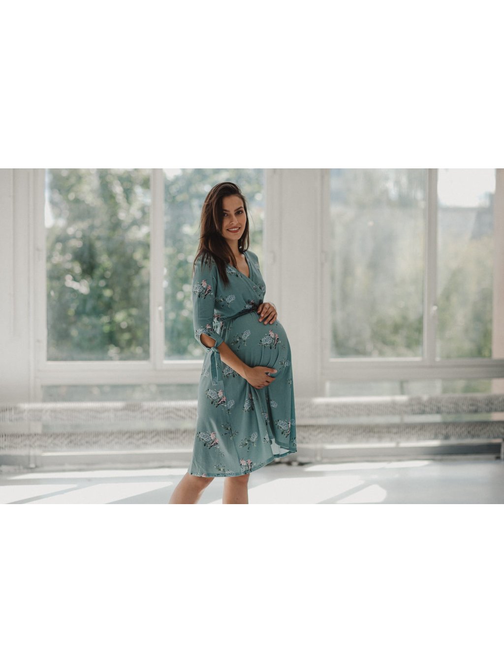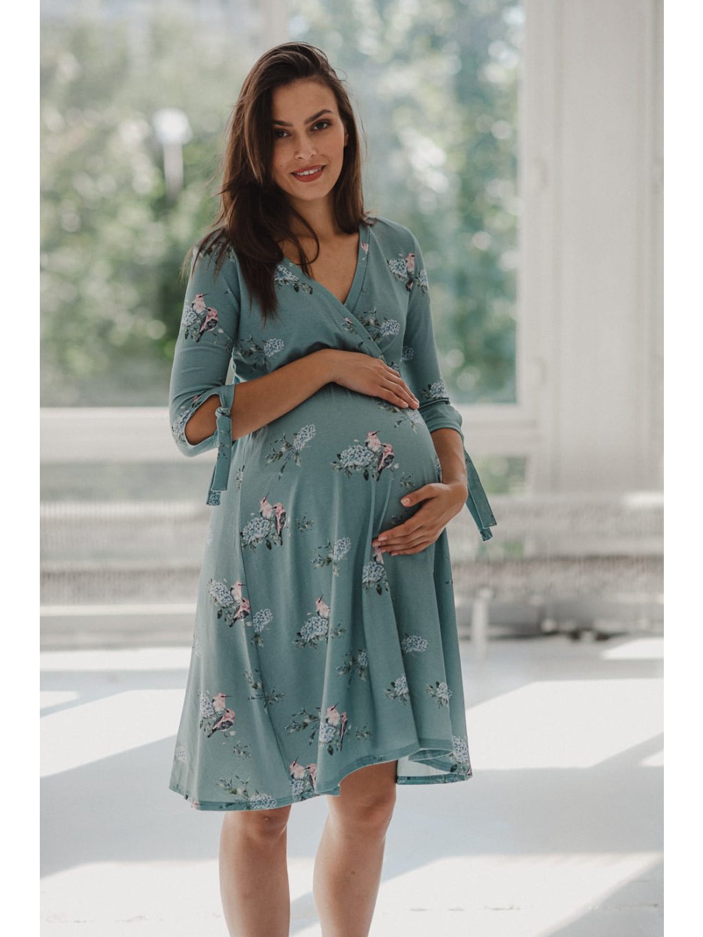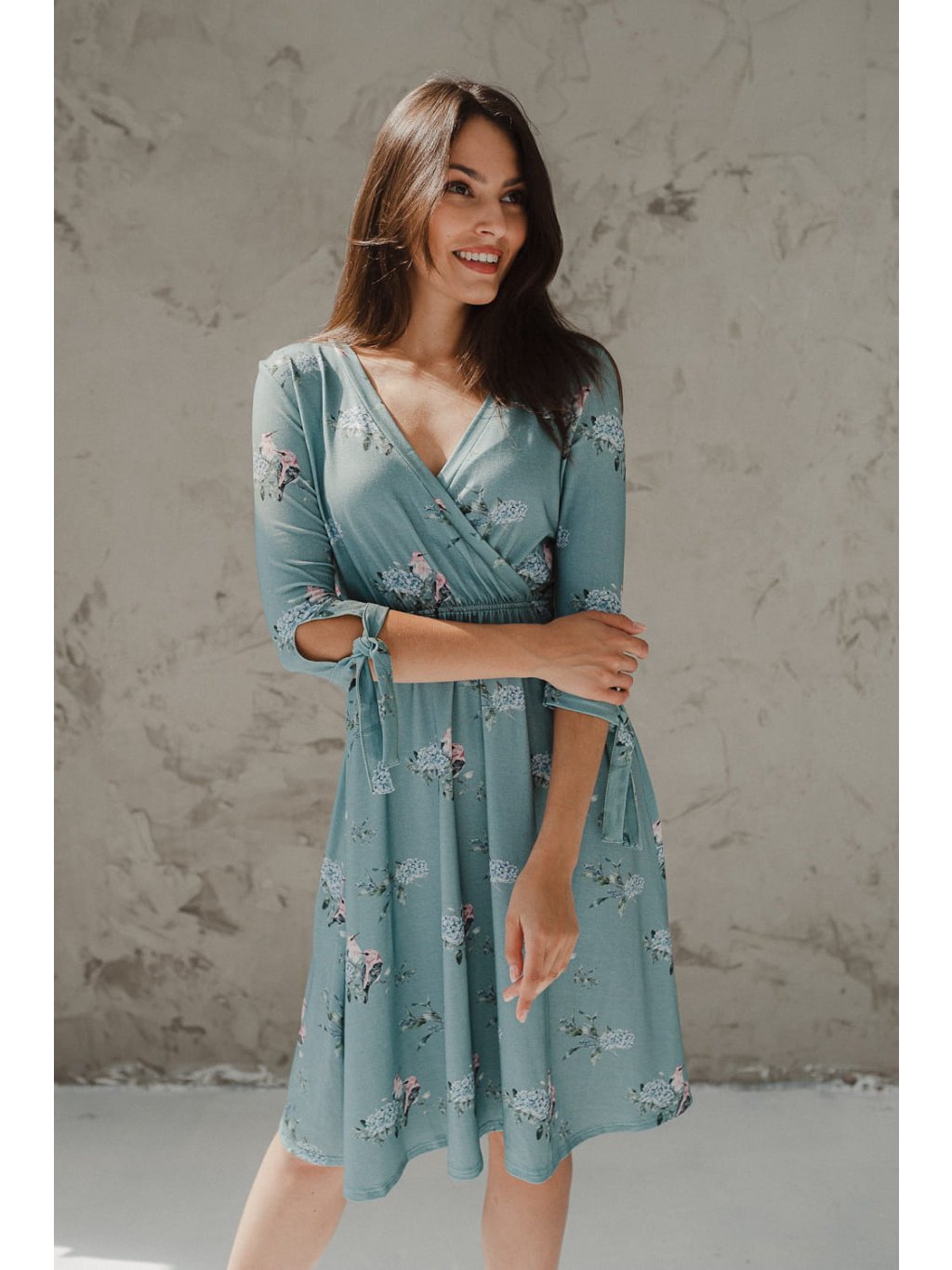 Těhotenské a kojící šaty Two ways MIDI eukalypt hortenzie 3/4 rukáv