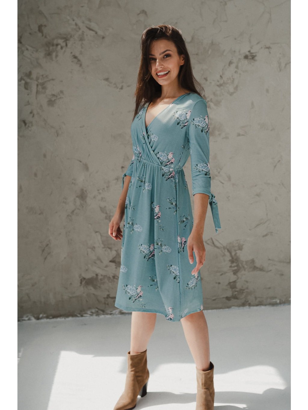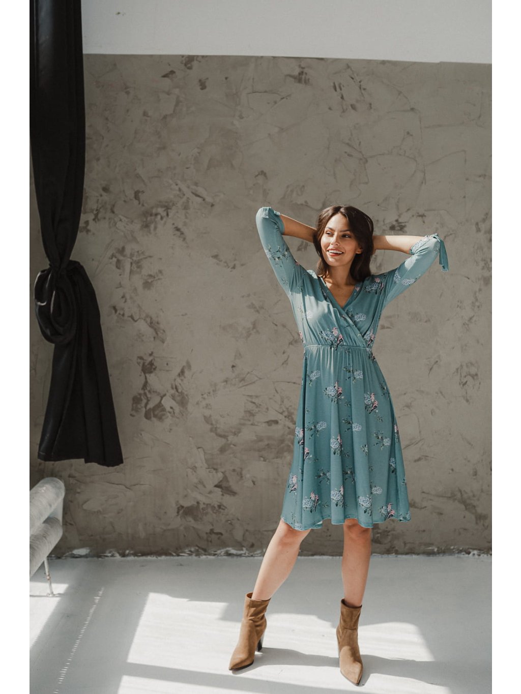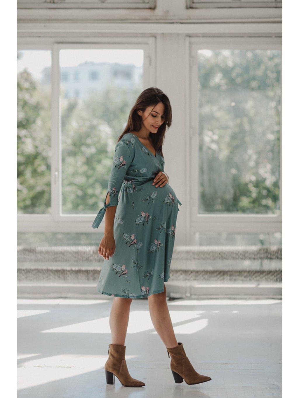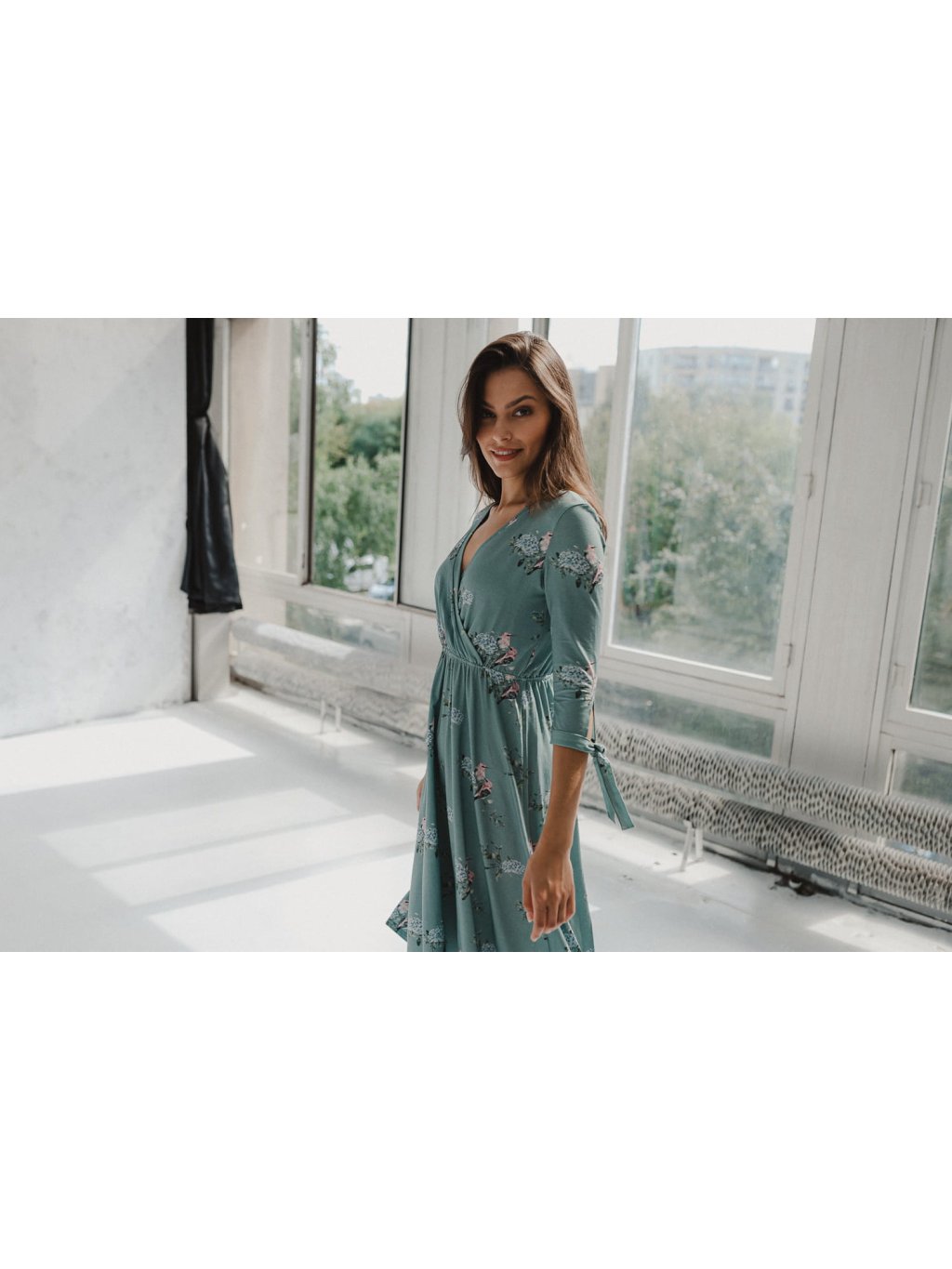 Těhotenské a kojící šaty Two ways MIDI eukalypt hortenzie 3/4 rukáv