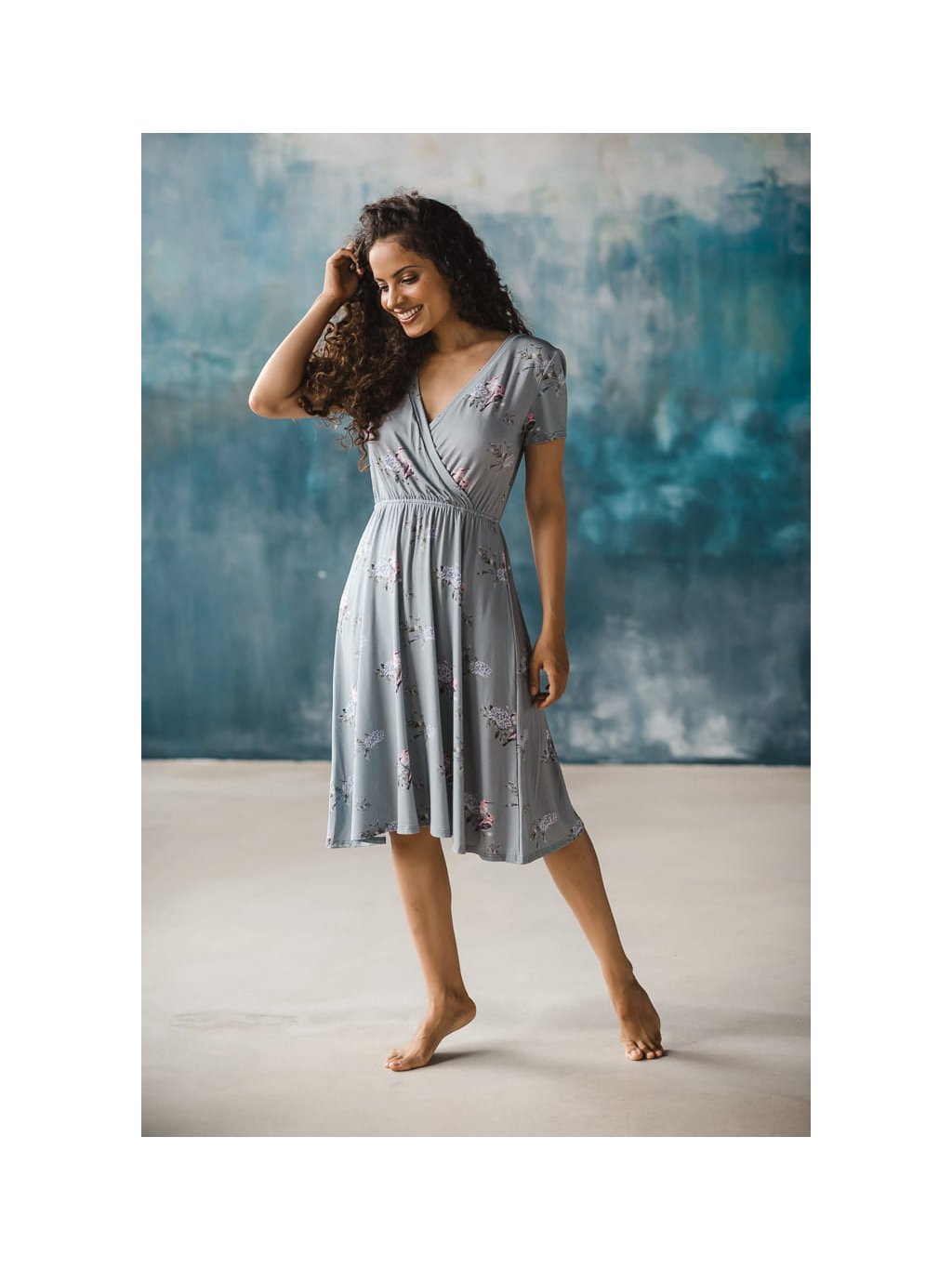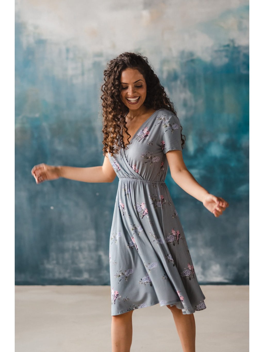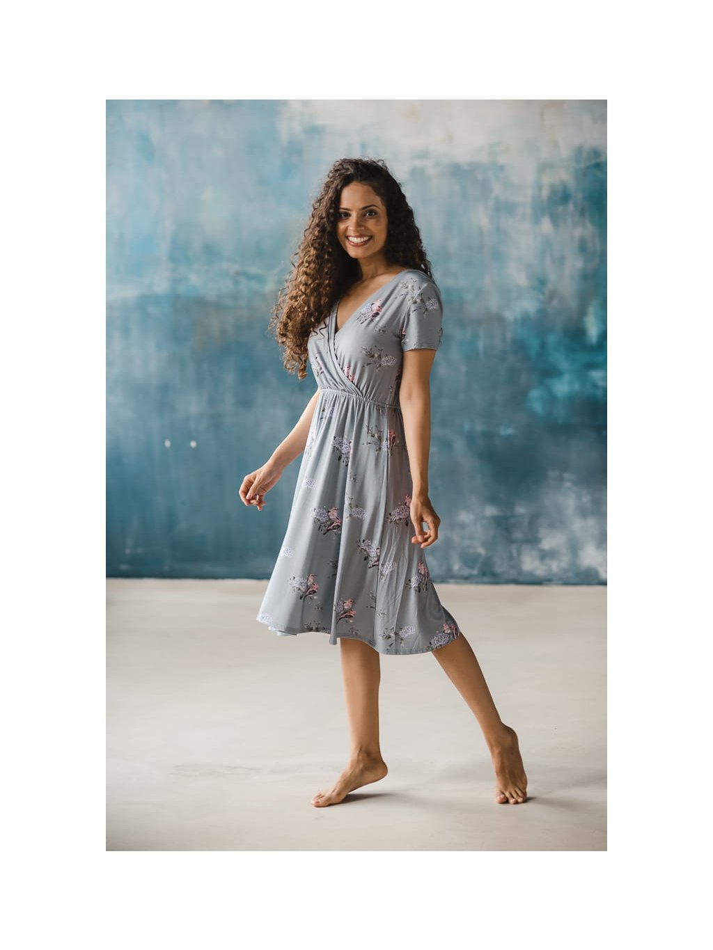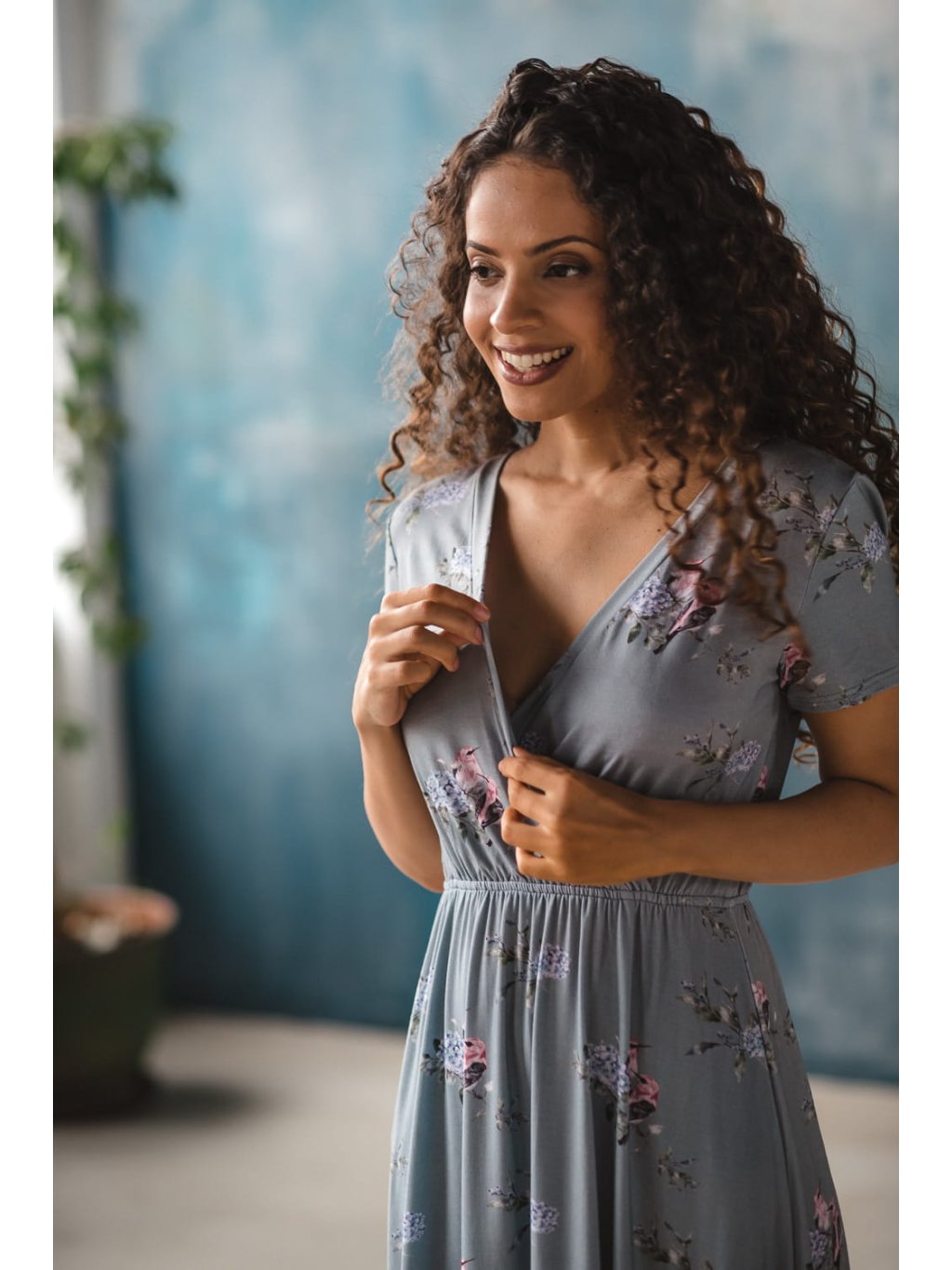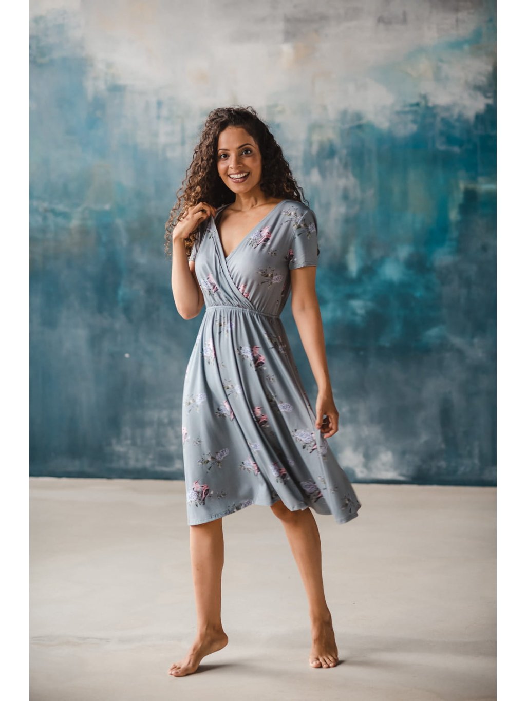 Těhotenské a kojící šaty Two ways MIDI eukalypt hortenzie krátký rukáv