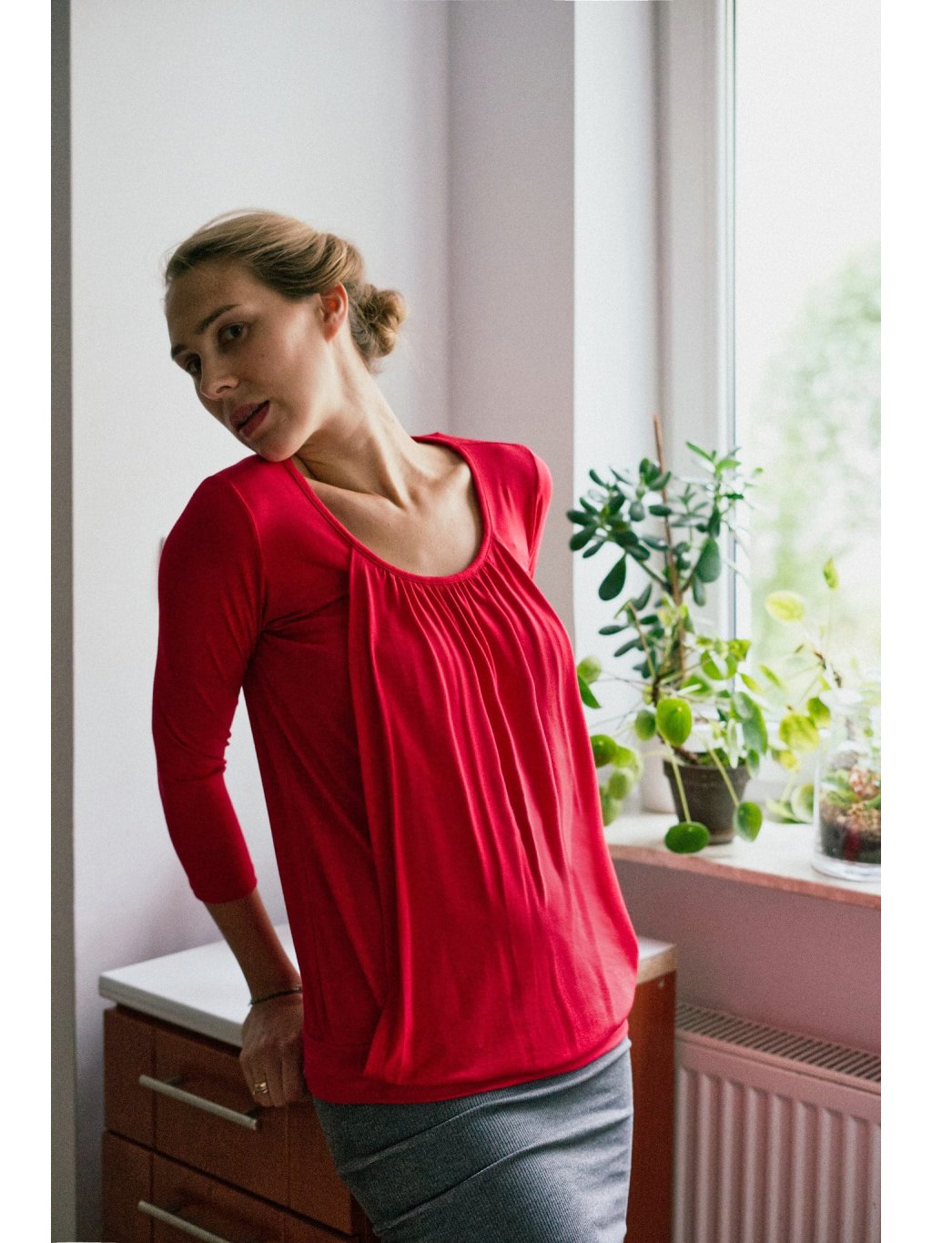 Těhotenské a kojící tričko Kangaroo červené 7/8 rukáv